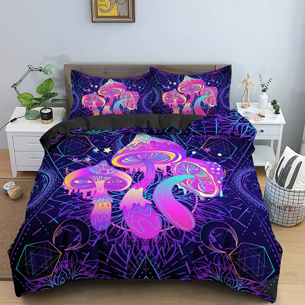 Комплект постельного белья с грибом, психоделический, мягкий, пододеяльник с наволочками, покрывало, комплекты постельного белья размера King, Queen