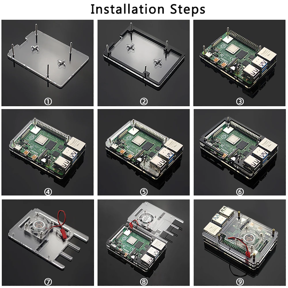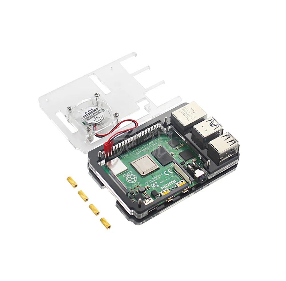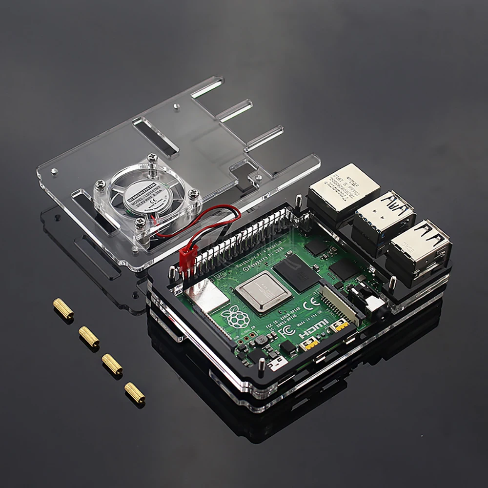 6-слойный акриловый чехол для Raspberry Pi 4, с синим светодиодным охлаждающим вентилятором