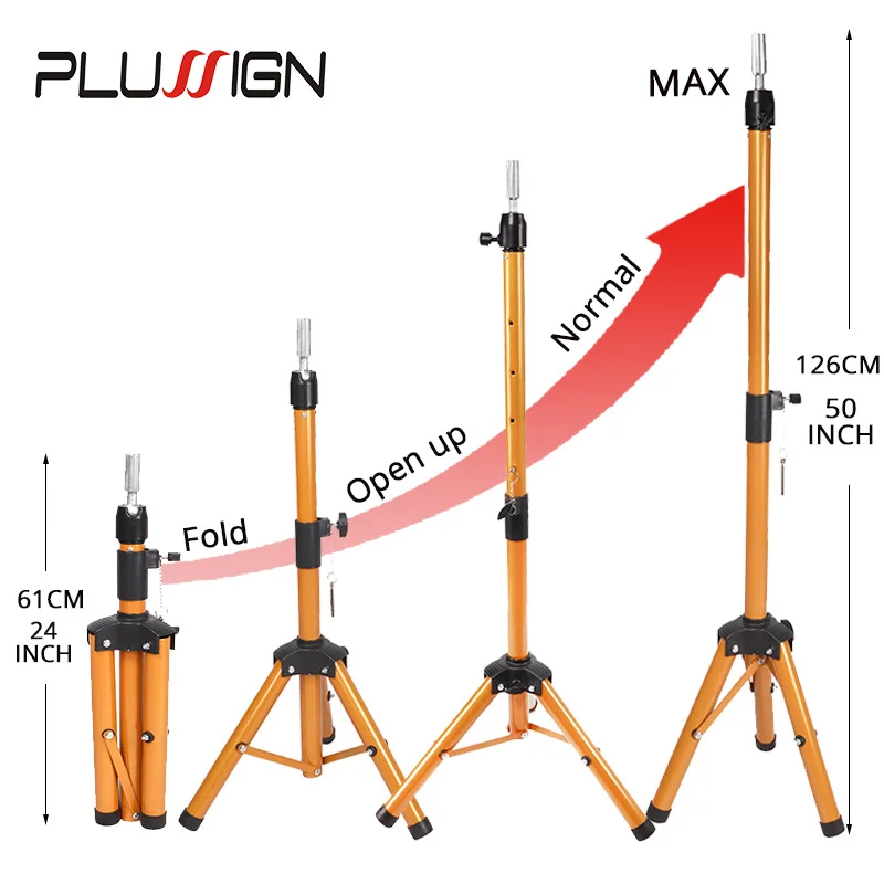 Штатив-тренога Plussign для парика, с головкой и штифтами, с парусиновой рукояткой, 21-25 дюймов, блочная головка для парика, серебристый