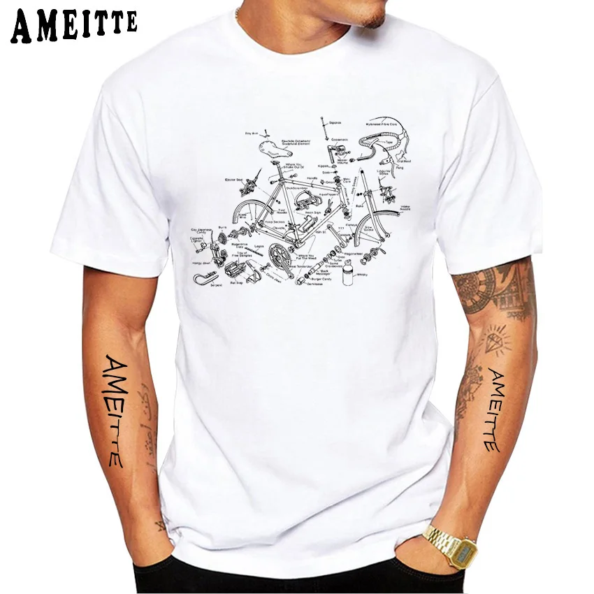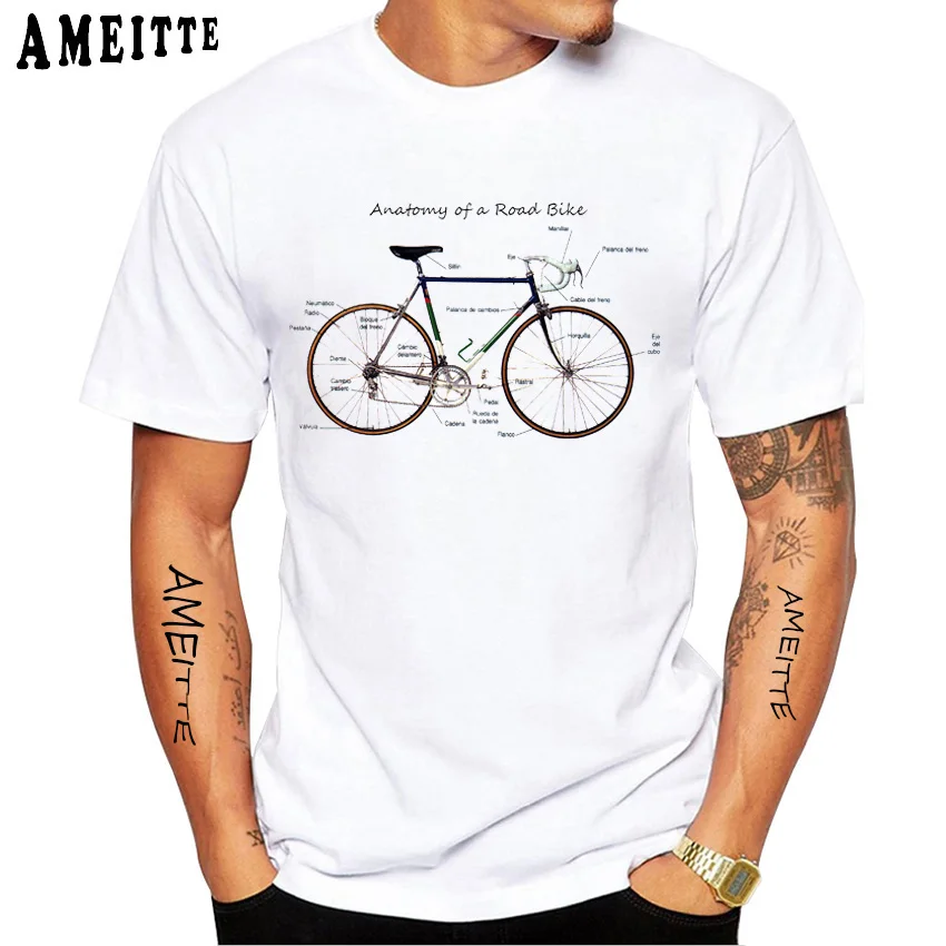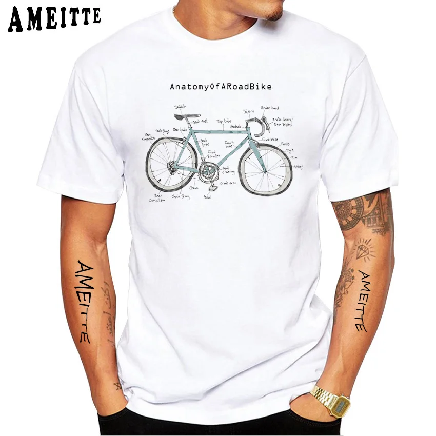 Новые летние мужские футболки с коротким рукавом Анатомия дорожно-велосипеды, футболка с принтом в винтажном стиле; Повседневные топы для мальчиков, забавная велосипеда вентиляторы дизайн белые футболки для девочек