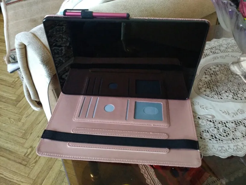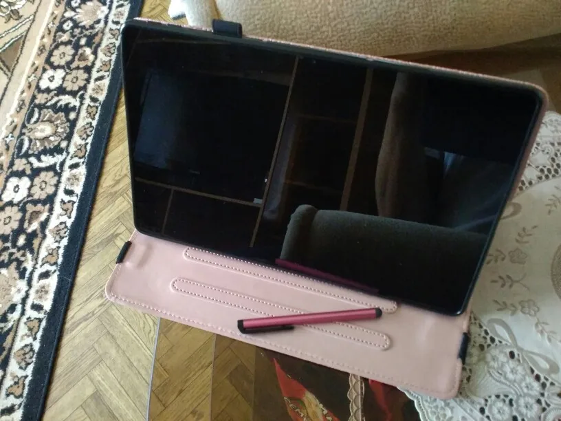 чехол очень понравился. К планшету подошёл идеально. в положении просмотра стоит устойчиво. в подарок был стилус. спасибо. пришел быстро, хорошо упакован, повреждений не было.с провдавцом не общалась.