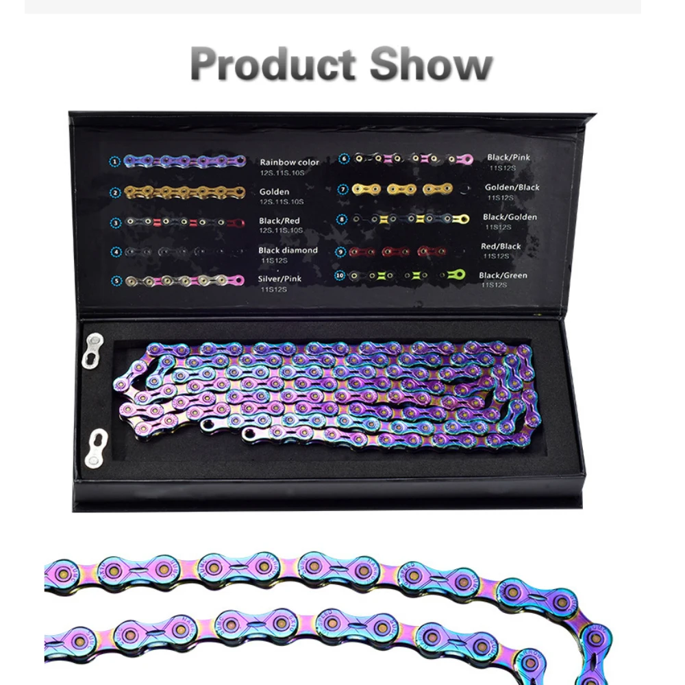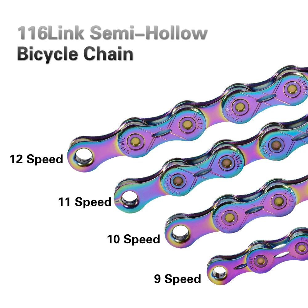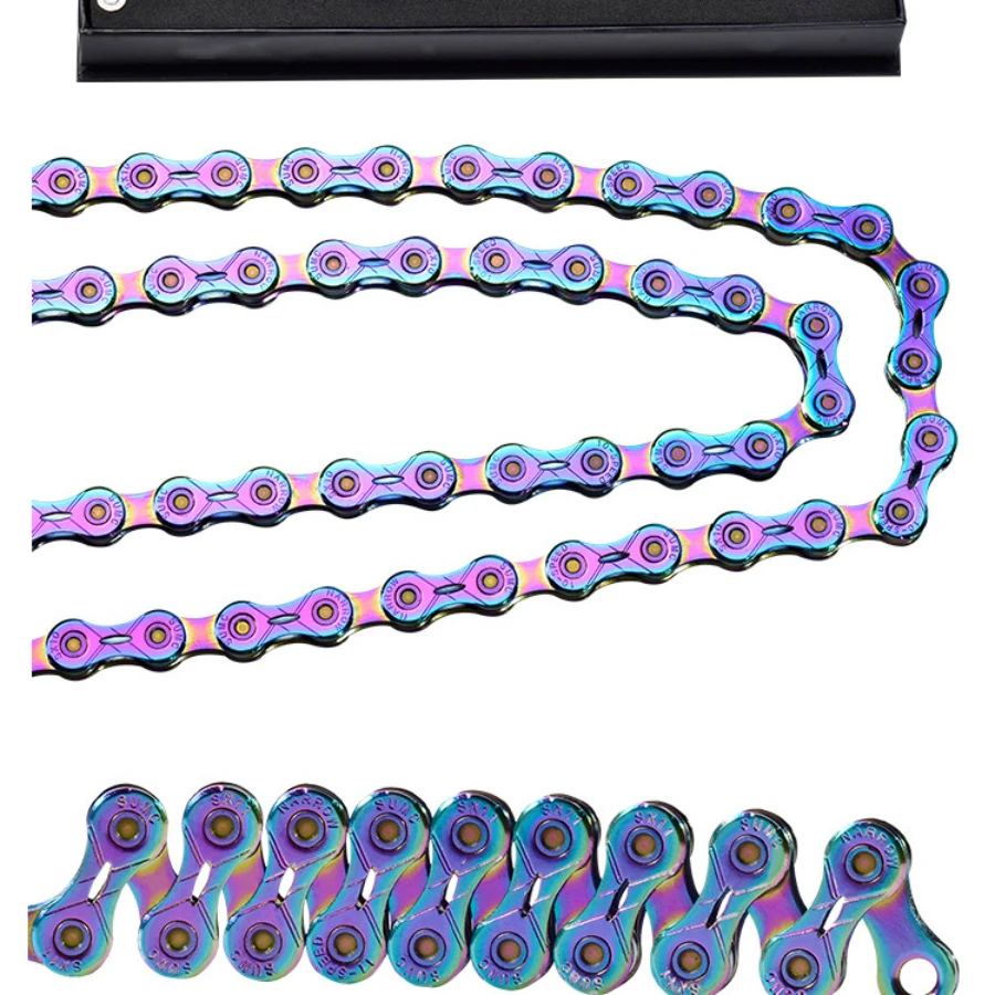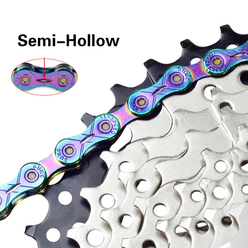 MTB цепь для дорожного велосипеда 116 ссылка полу-полые покрытием разноцветное Цветной; Большие размеры 9, 10, 11, 12, Скорость горный велосипед цепи для SRAM