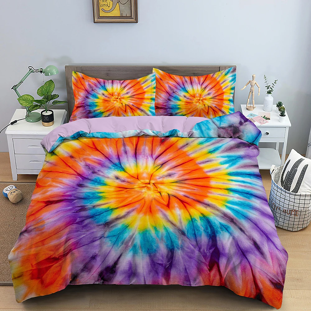 Комплект постельного белья с радужным принтом, пододеяльник в разноцветную полоску из микрофибры, одеялопокрывало размера KingQueen