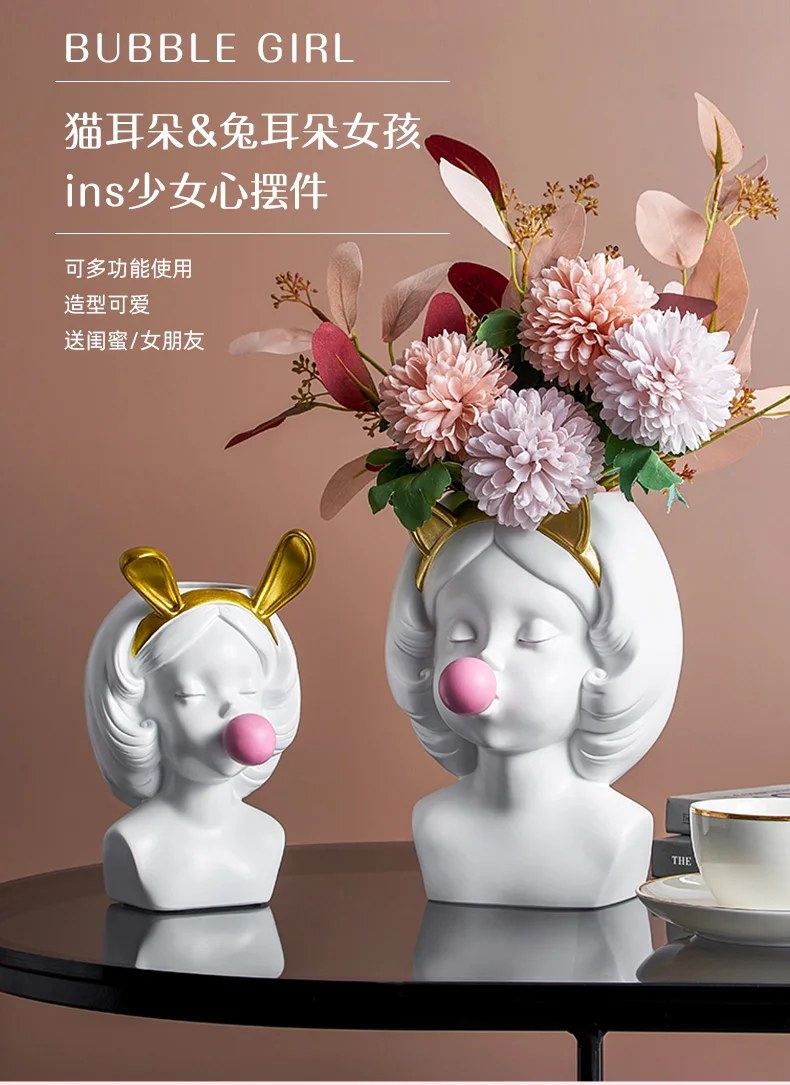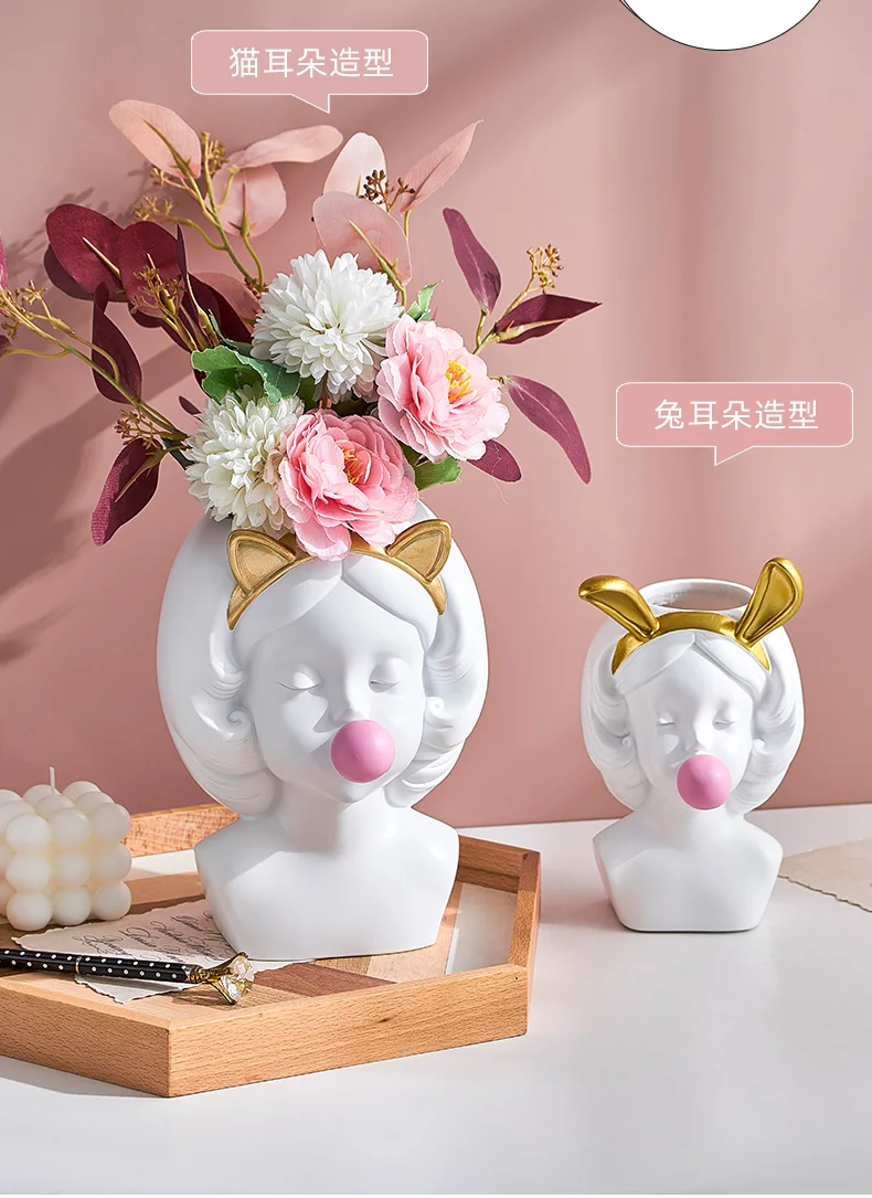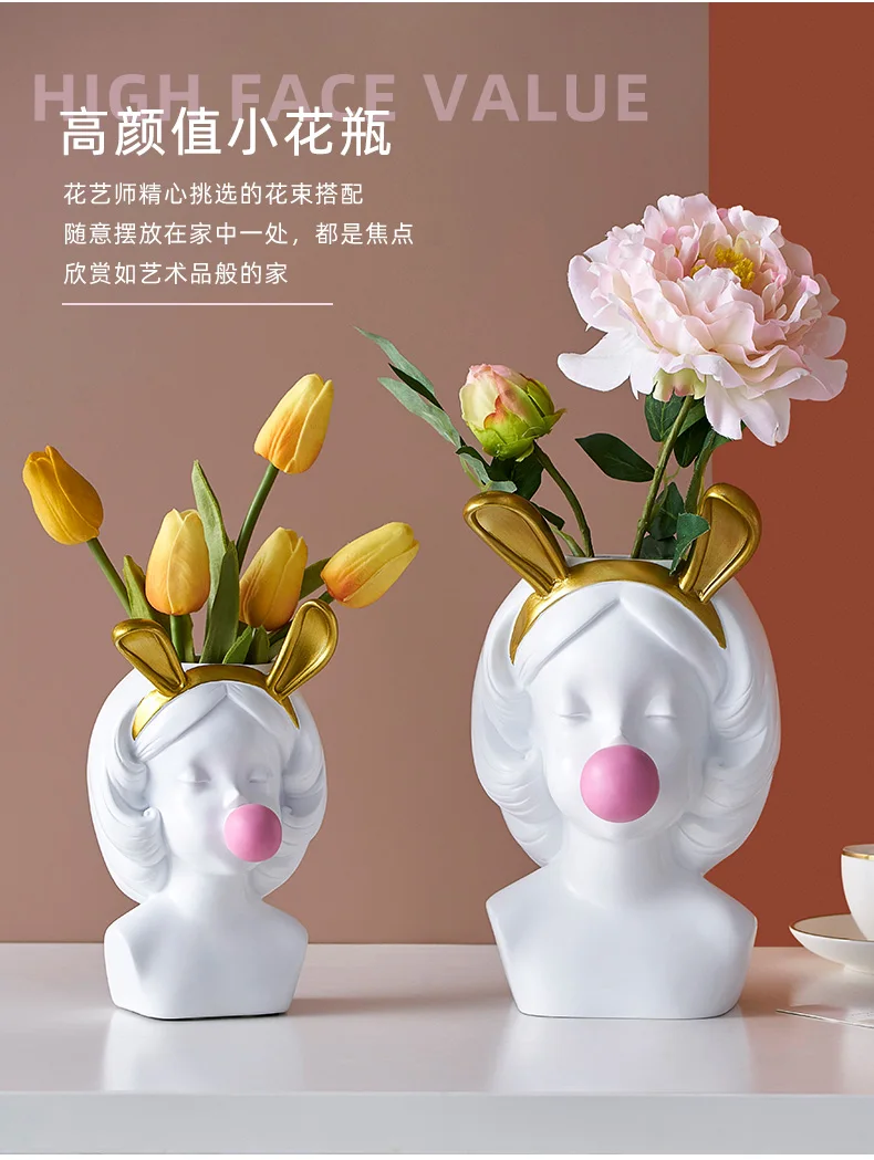 Современная Скандинавская домашняя ваза из смолы, украшение милой девушки, выдувные пузырьки, декоративная головка, резьба, цветок, вазы, держатель для ручки, ваза, цветы