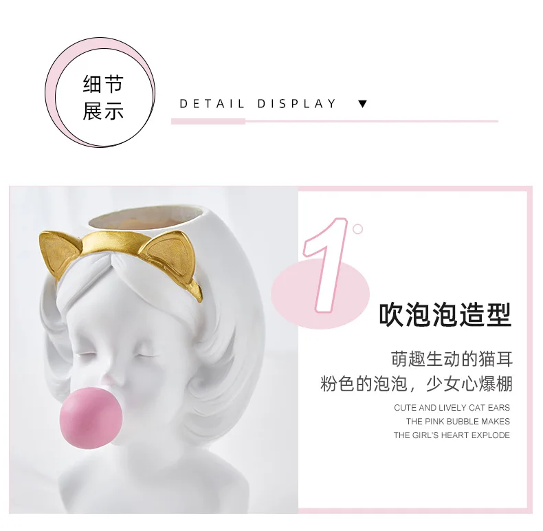 Название продукта:Ваза для девочек с пузырьками Материал:Смола Форма:Кролик, кошка Размер/цвет:Пожалуйста, посмотрите на картинку ниже или обратитесь к продавцу Применимые варианты:Гостиная, спальня, офис Упаковочный лист:1 * ваза или 1 * ваза + Искусственные цветы Упаковка:Коробка + пузырчатый мешок + наполнение пеной (очень безопасная посылка) Послепродажное обслуживание:Если у вас возникнут какие-либо проблемы с товаром, пожалуйста, своевременно сообщите нам отзывы, мы постараемся сделать все возможное, чтобы помочь вам, что очень важно для нас.