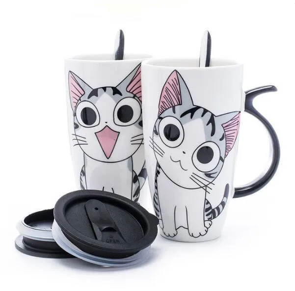 Кофейная кружка, чайная чашка, керамическая крышка с мультяшным кот...