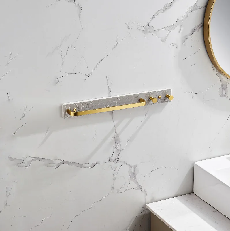 Набор аксессуаров для ванной комнаты, Золотая полка из матового мат...