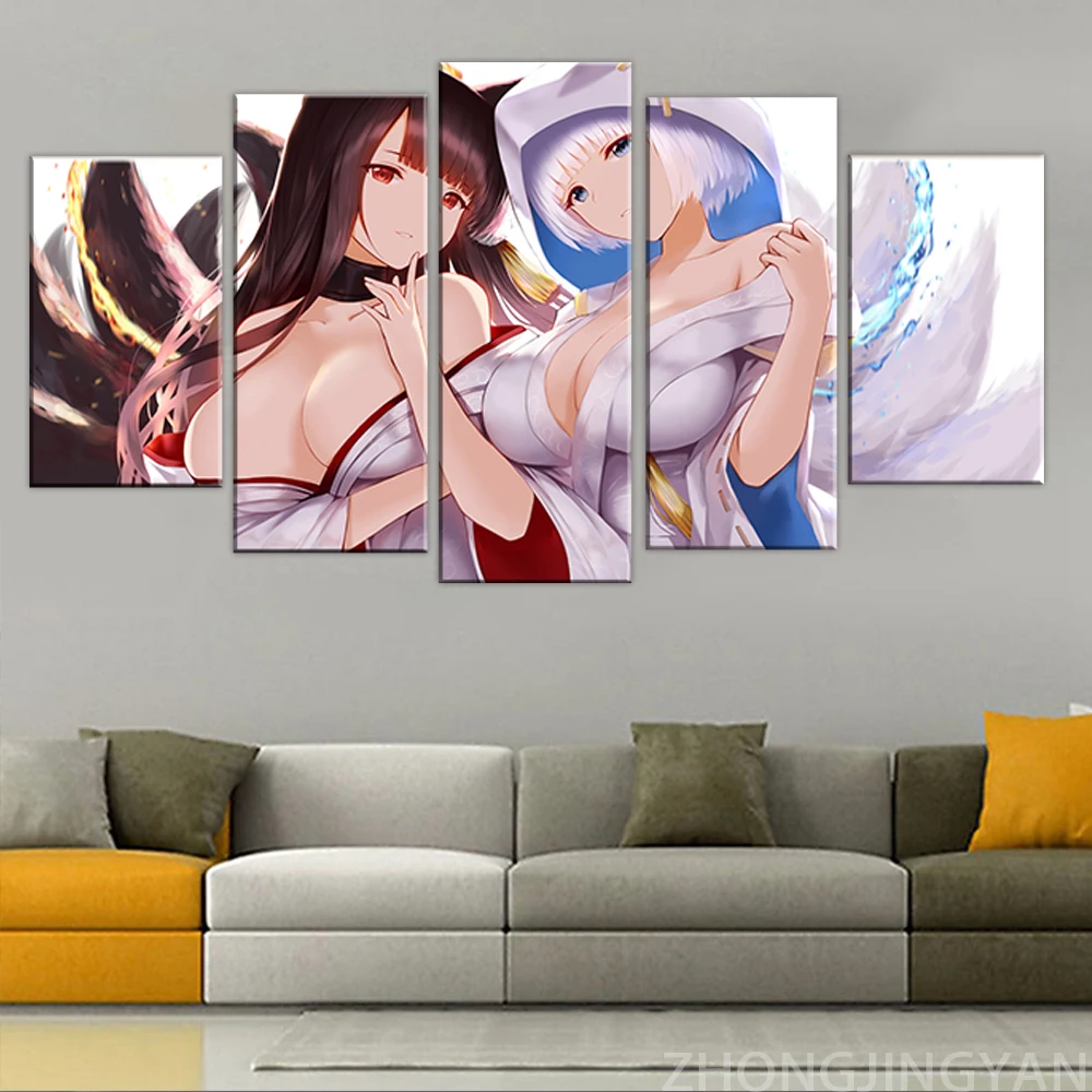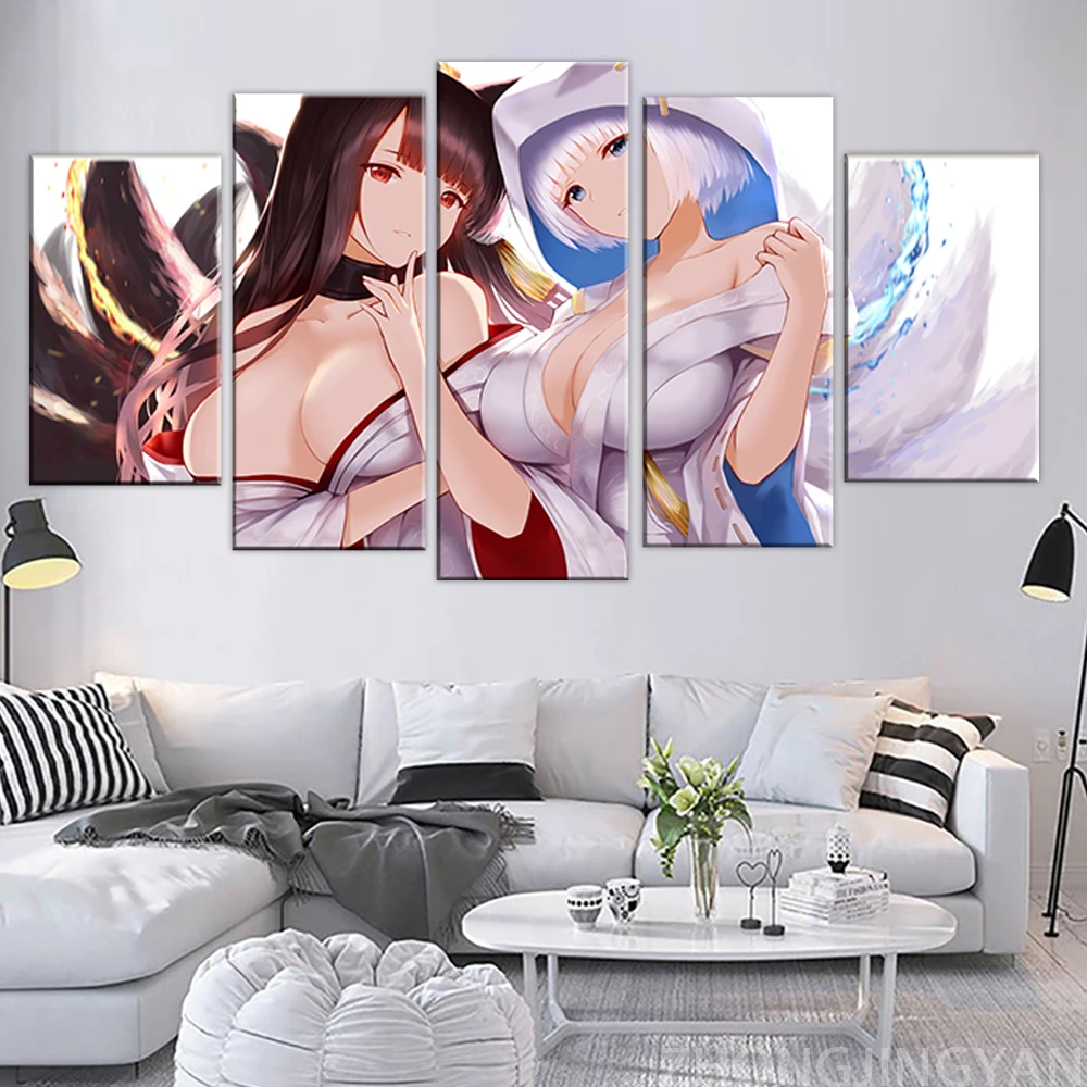 5 панельных панелей, игровой плакат с акатаги, лазурный Лейн, Картина на холсте для гостиной, настенное искусство, Декор, картина, плакат для рисования
