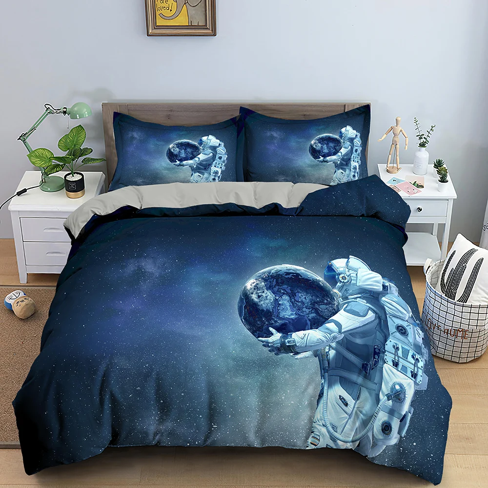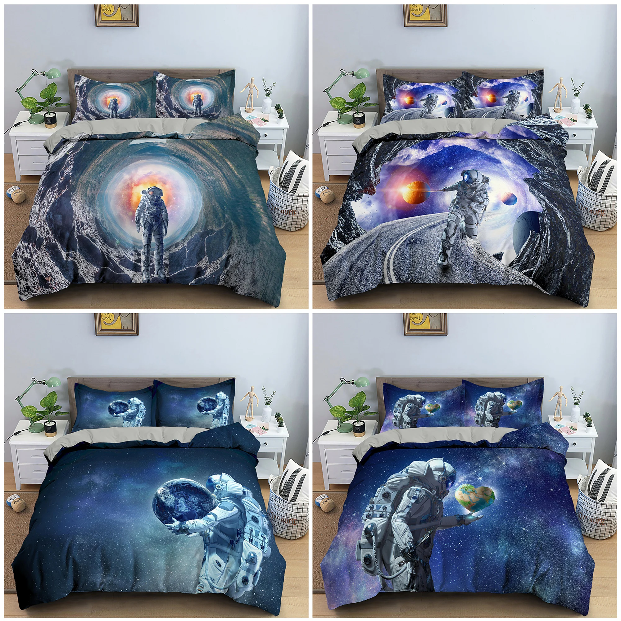 Комплект постельного белья с изображением астронавта, Комплект постельного белья с объемным изображением космоса, пододеяльник, полноразмерный королевский комплект постельного белья с голубым галактическим рисунком, одеяло, чехол для спальни для подростков