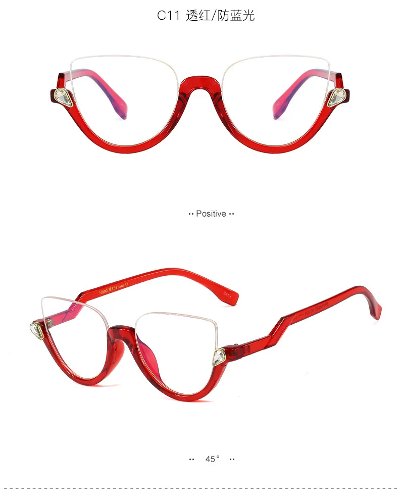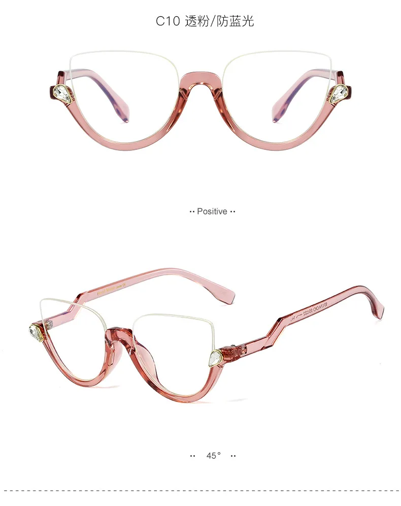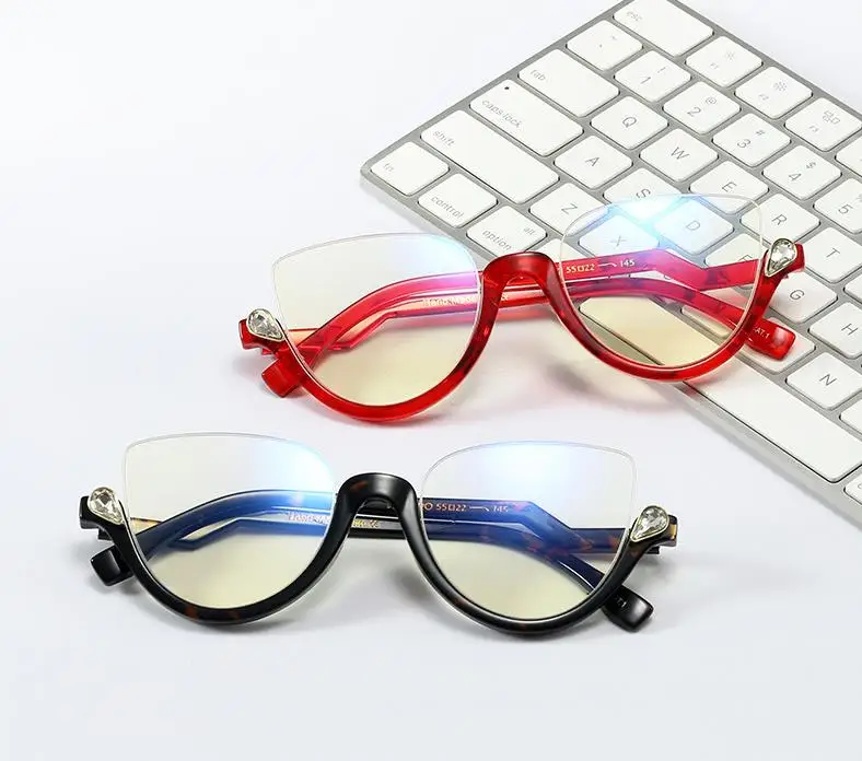 Очки для чтения женские прозрачные, аксессуар для работы за компьютером, с защитой от сисветильник света, с кристаллами, в стиле ретро, с коротким зрением, + 1 + 2 + 3 + 6, кошачий глаз, Amb