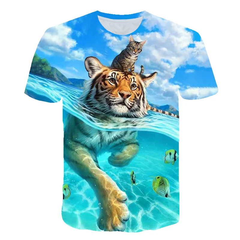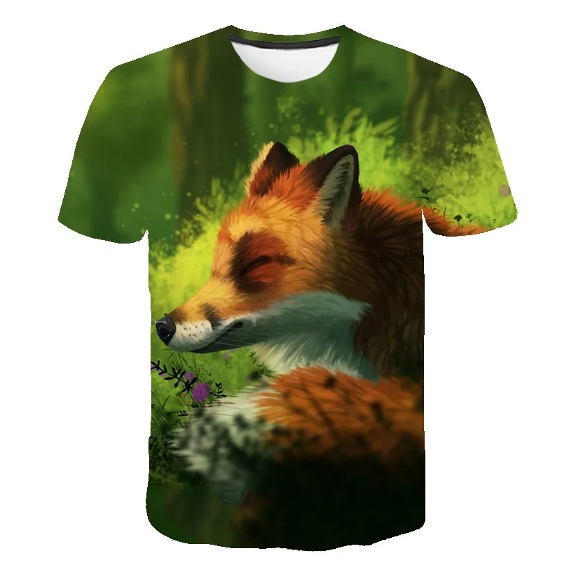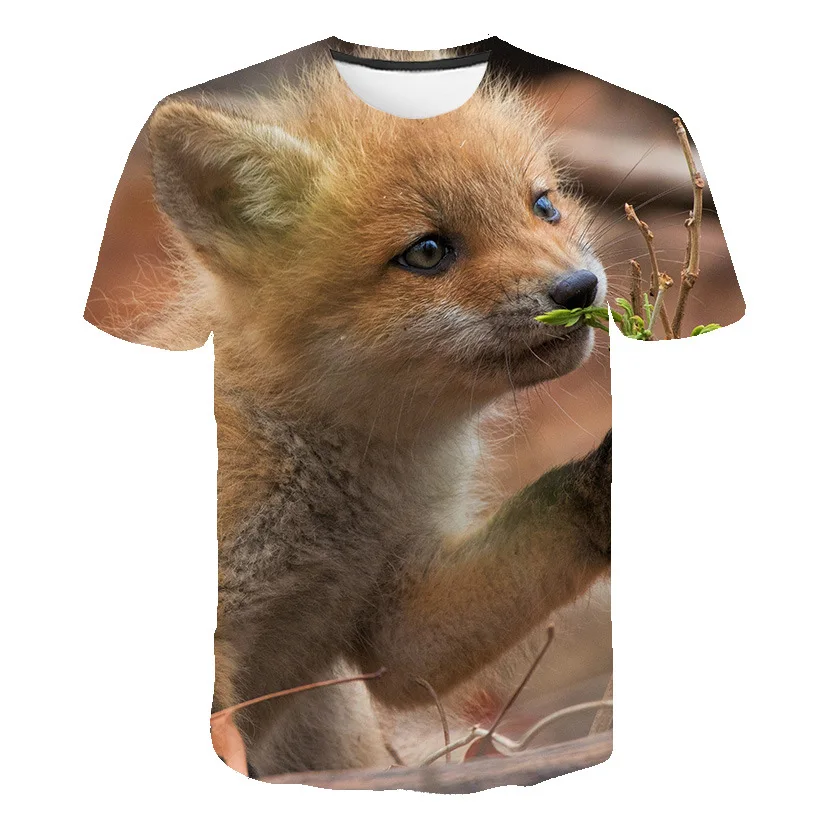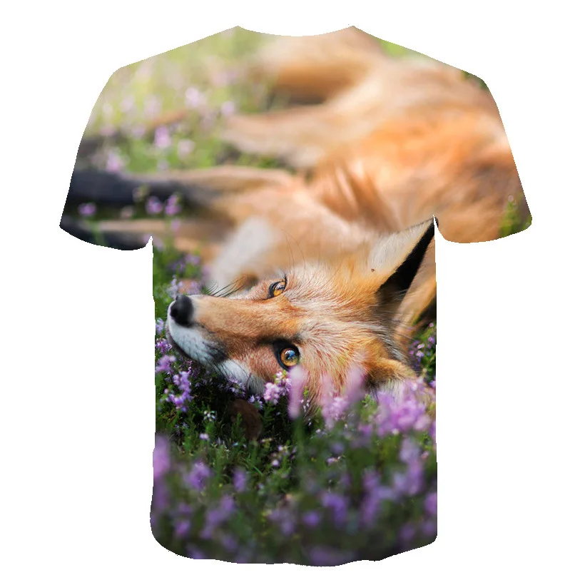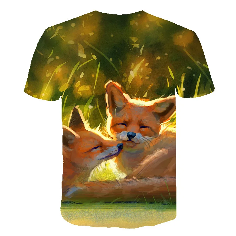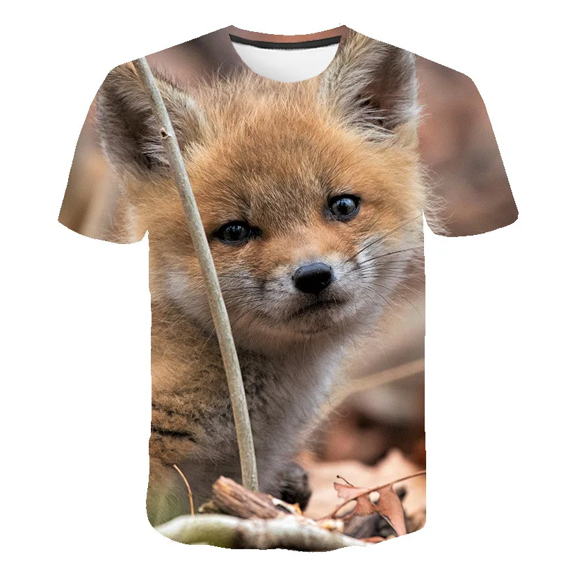 Летняя Детская футболка с объемным рисунком Детская футболка с короткими рукавами с рисунком лисы Весенняя модная одежда для мальчиков и девочек футболки с круглым вырезом 2021