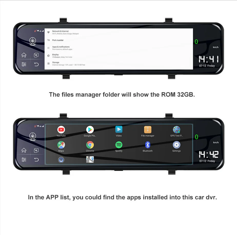 Автомобильный видеорегистратор Android 8,1, 4G, 12 дюймов, Wi-Fi, GPS навигатор зеркало заднего вида, для автомобильного рекордера RAM, 4G ROM, 32G, видеорегистратор ADAS