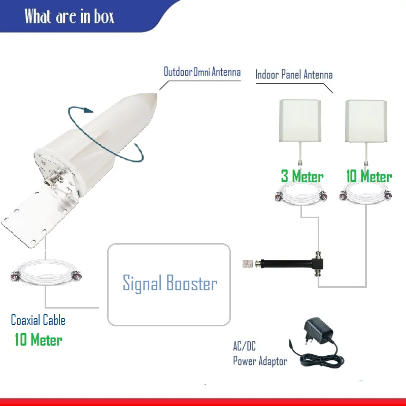 -13 м 1 ракета 1 панель:1 усилитель (адаптер переменного/постоянного тока европейского стандарта) 1 шт.2-на открытом воздухе ракета антенна 1 шт.3-Крытый панельная антенна 1 шт.4-Coxial кабель 10 метров 1 шт5-Coxial кабель 3 метра 1 шт