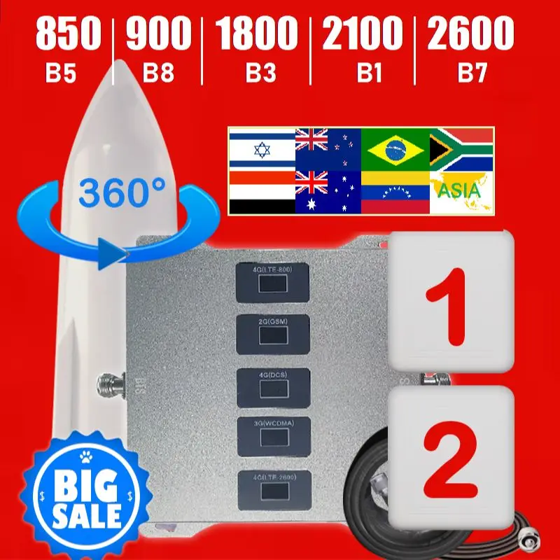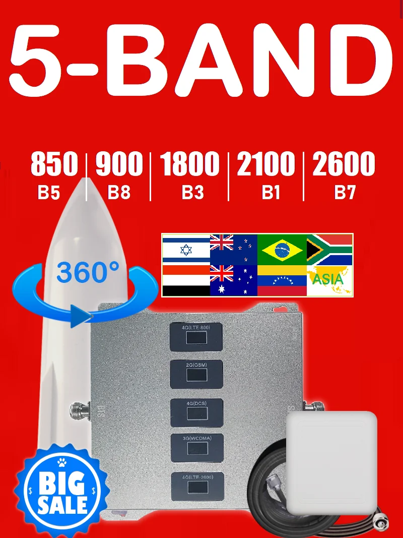Пятиполосный усилитель сотовой связи, усилитель сигнала LTE, ретранслятор b5 850 900 1800 2100 2600 МГц, Нигерия, Бразилия, Таиланд, Йемен, аналия