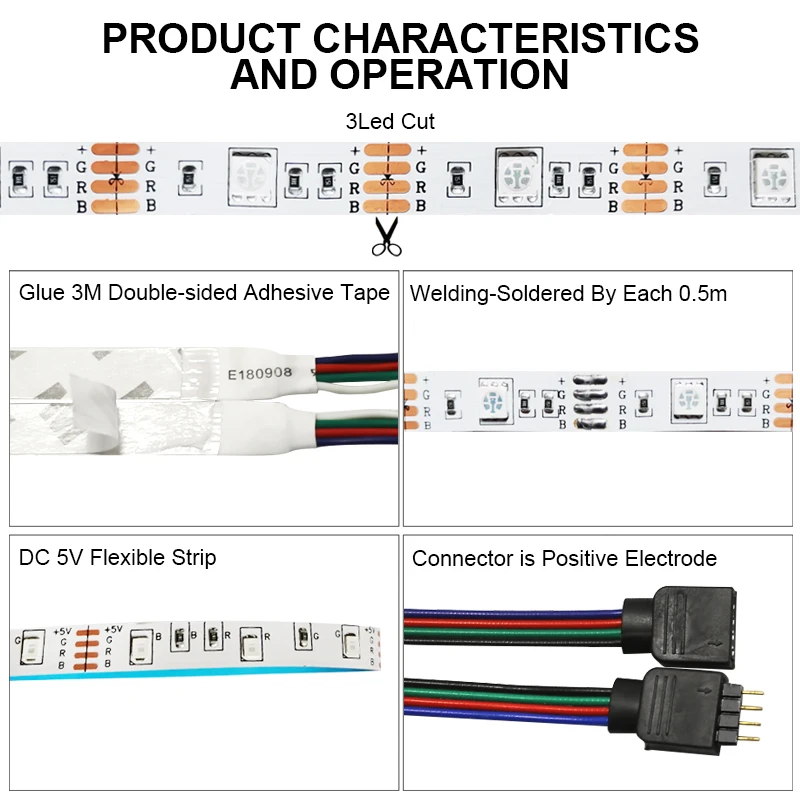 Светодиодный Тип: 2835 SMD светодиодный Светодиодный Количество: 54 светодиодный s/метрУгол луча: 120 ° рабочее Входное напряжение: 5 ВРабочая температура: от-20 до 50 ° Режим привода: USBEmit цвет: RGB