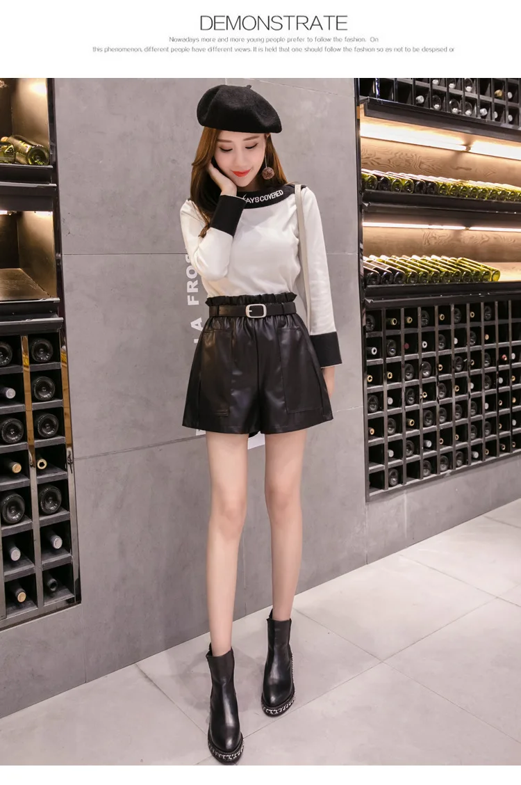 Женская уличная куртка из искусственной кожи, Повседневная Верхняя одежда с широкими штанинами короткие брюки, расцветка черная и хаки Женская обувь с оборками с а-линией талии брюки для девочек-подростков