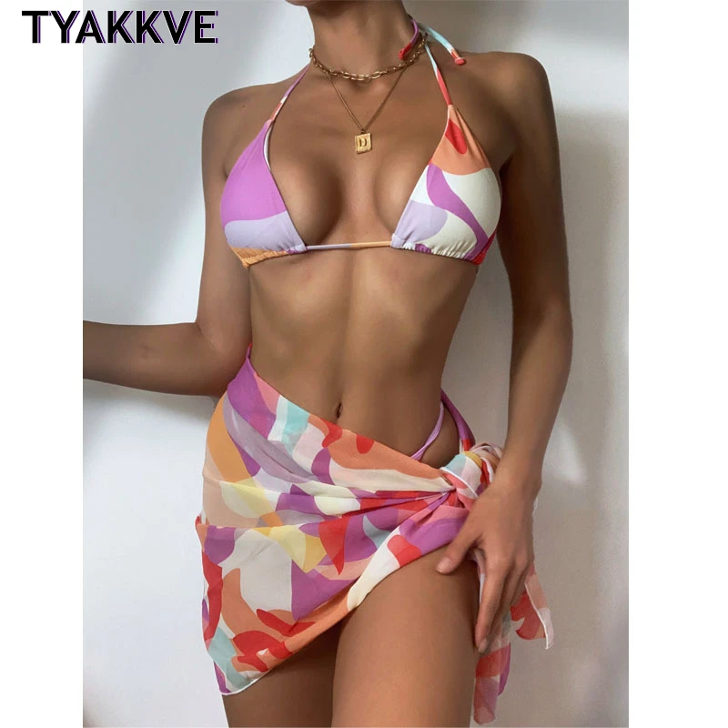 Купальник-бикини TYAKKVE 2021, женский купальник с высоким вырезом, костюм из 3 предметов, купальник с лямкой на шее, женский купальный костюм
