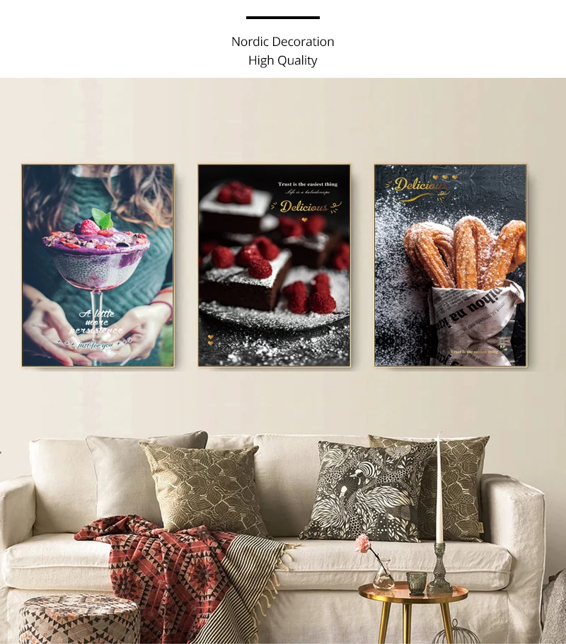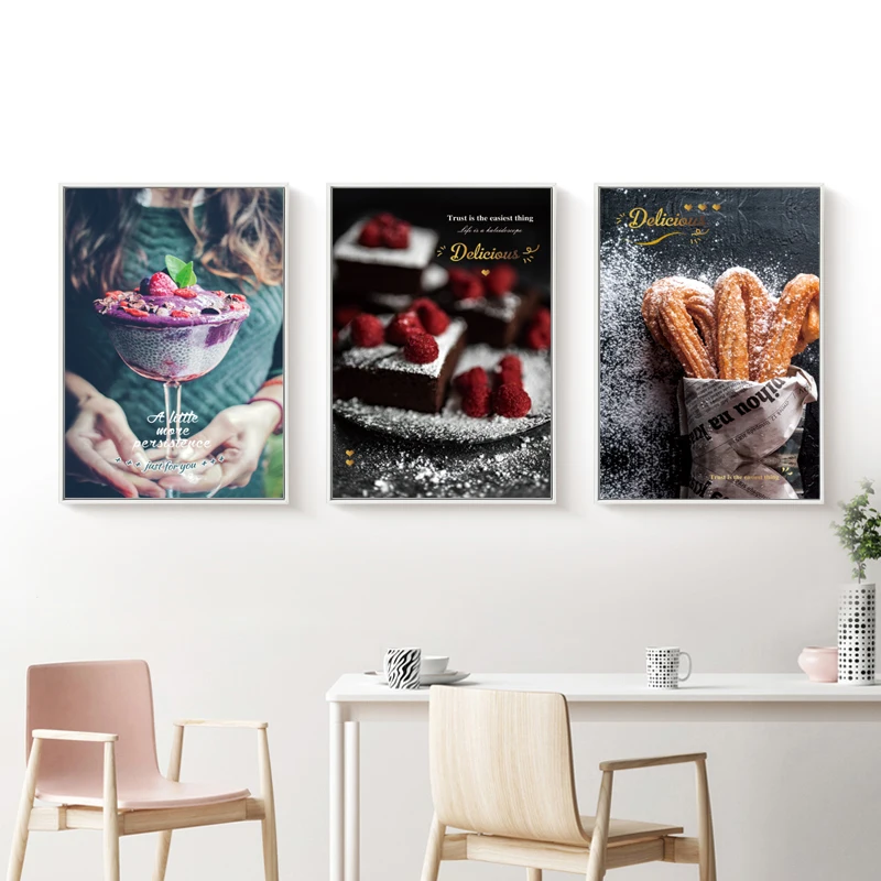 Плакат с едой и принтом торта, десерта, холст с рисунком, настенное искусство, картина для кухни, столовой, ресторана, пекарни, десертов, магазина, Декор