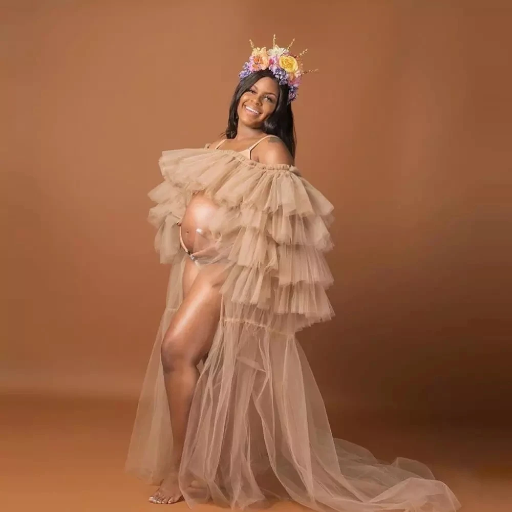 Соблазнительные тюлевые халаты для беременных прозрачные женские платья с открытыми плечами для фотографии длинный пышный тюлевый халат на заказ
