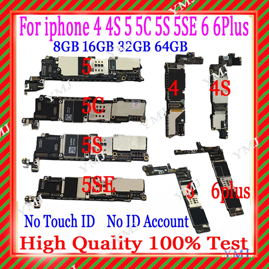 Заводская разблокированная материнская плата без Touch ID для iphone 4 4S 5 5C 5S 5SE 6 6Plus с полными ЧИПАМИ 100% протестированная логическая плата хорошая работа