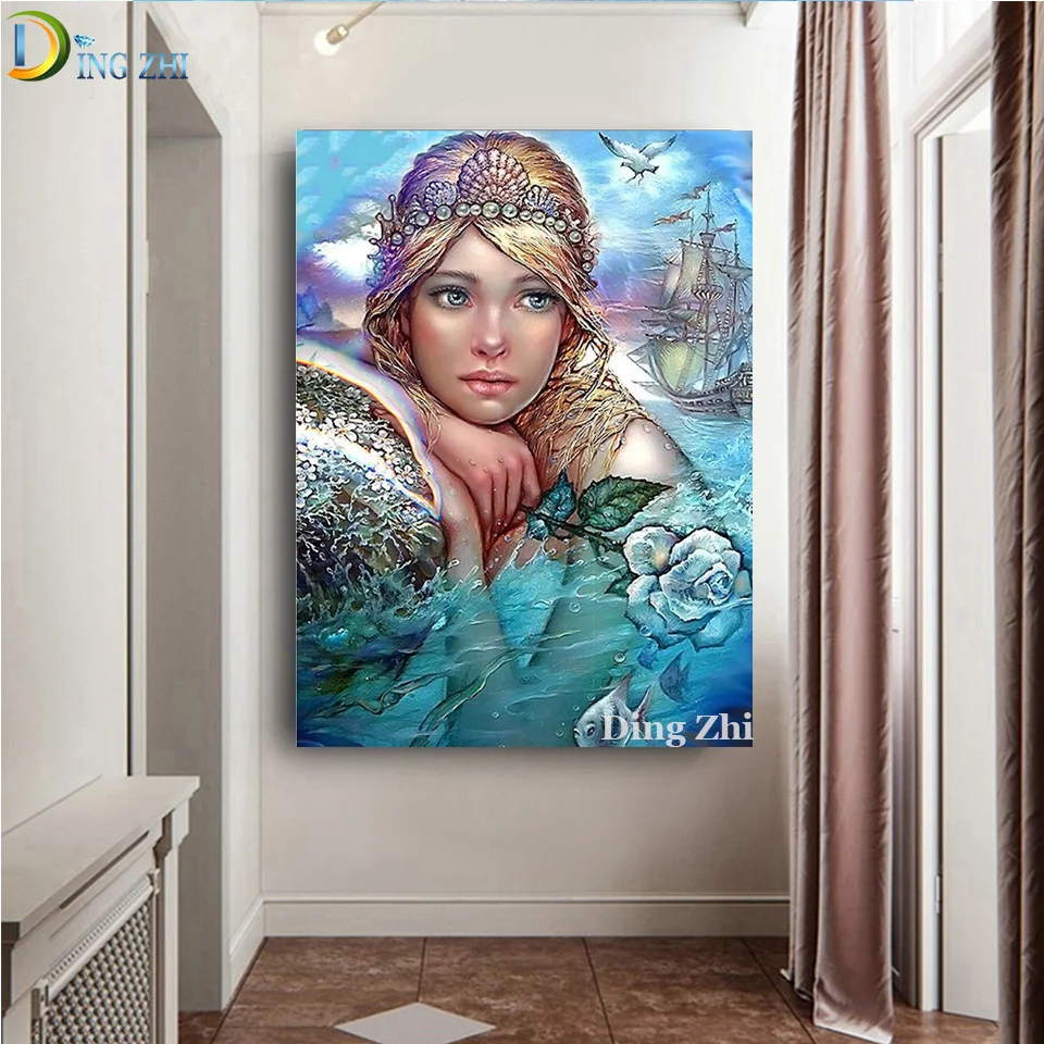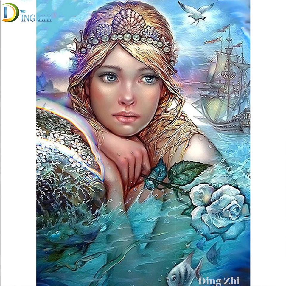 DIY Алмазная картина, вышивка крестом, абстрактный цветок русалки, полностью квадратная Алмазная вышивка ручной работы, морское парусное украшение, подарок 5D