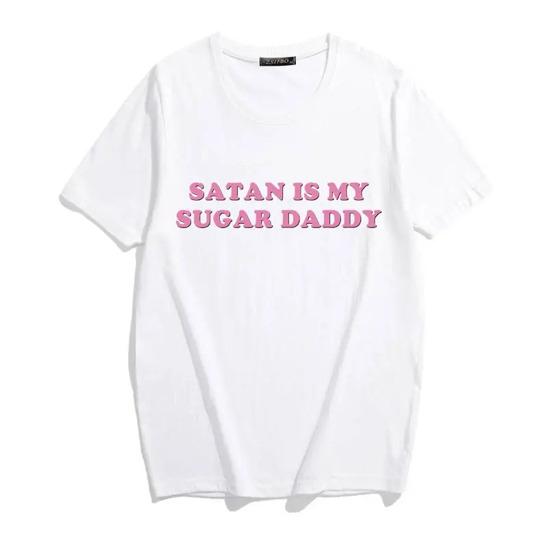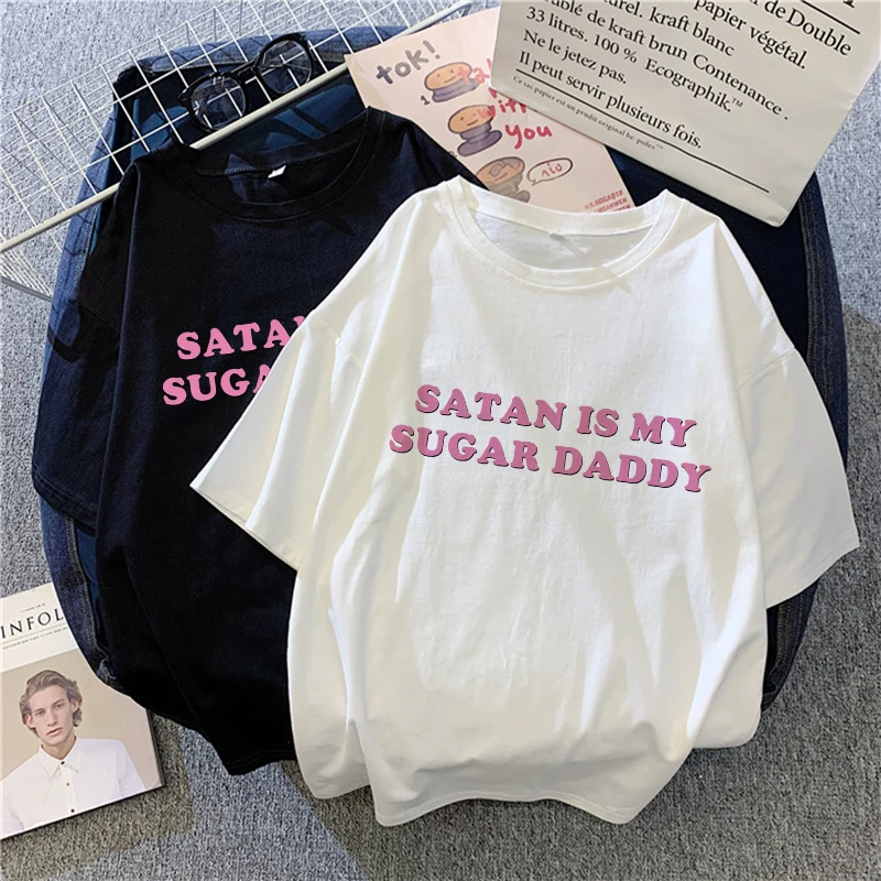 Женские футболки, модная футболка, сатана это мой сахарный папа, Tumblr, рубашка, эстетичная Женская одежда, кавайная футболка в стиле Харадзюку