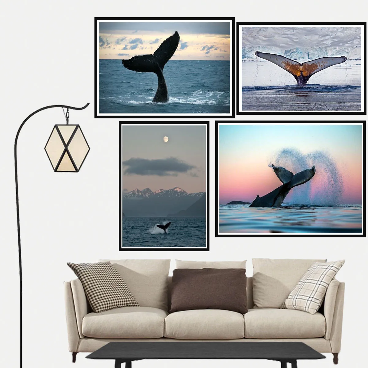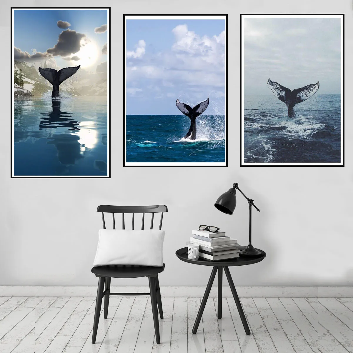 Картины для интерьера, модные настенные плакаты, китовый хвост, морской пейзаж, холст, Современный домашний декор, Безрамная картина на стену, лофт