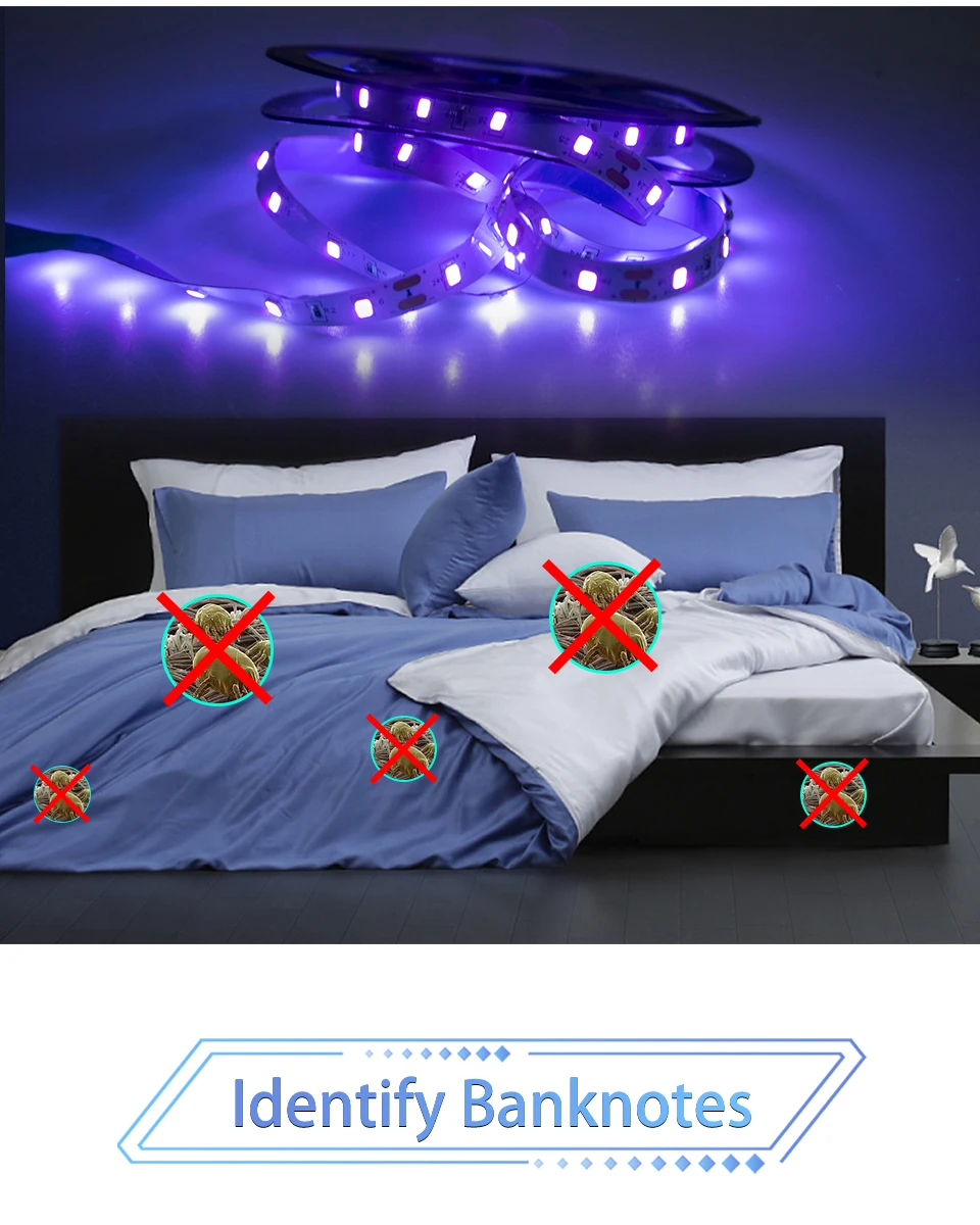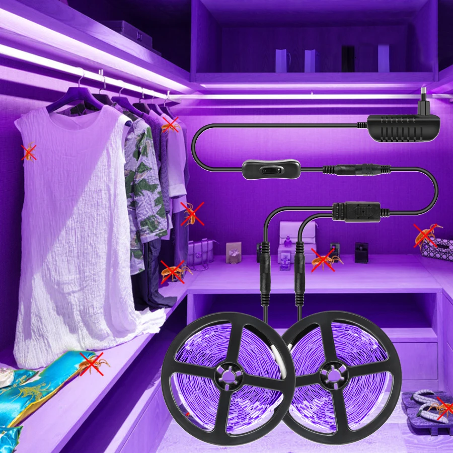 Гибкая светодиодная УФ-лента, DC 12 В, 38-2835 нм