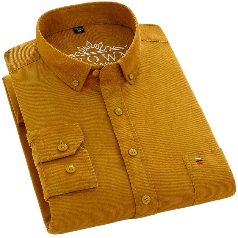 Рубашка мужская Вельветовая в стиле оверсайз, 100% хлопок, S-7XL с длинными рукавами и передним карманом