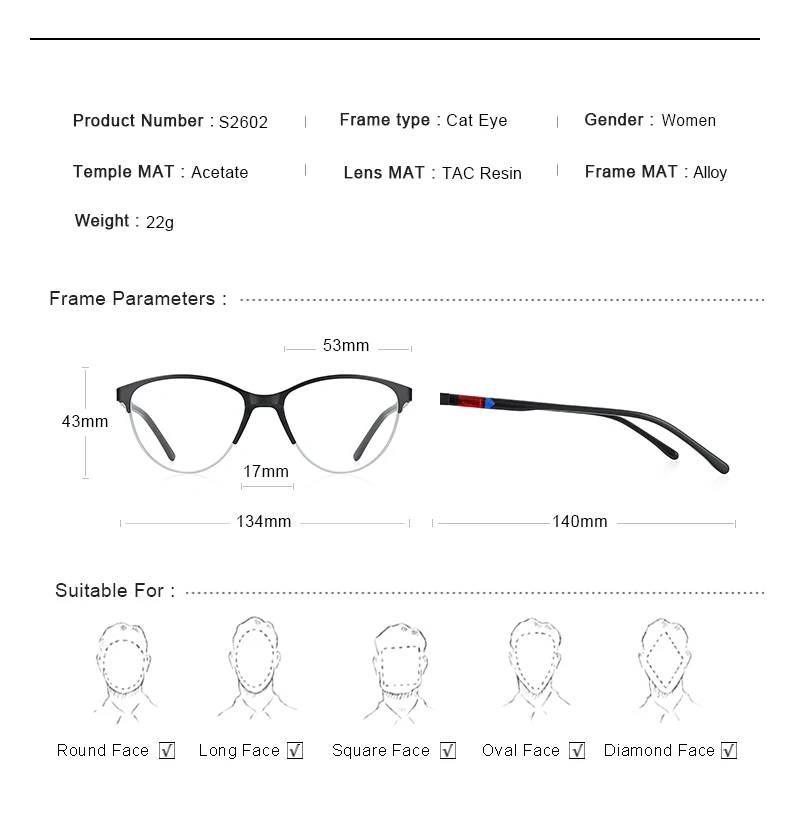 Оправа для очков Женская ацетатная в стиле кошачий глаз, S2620
