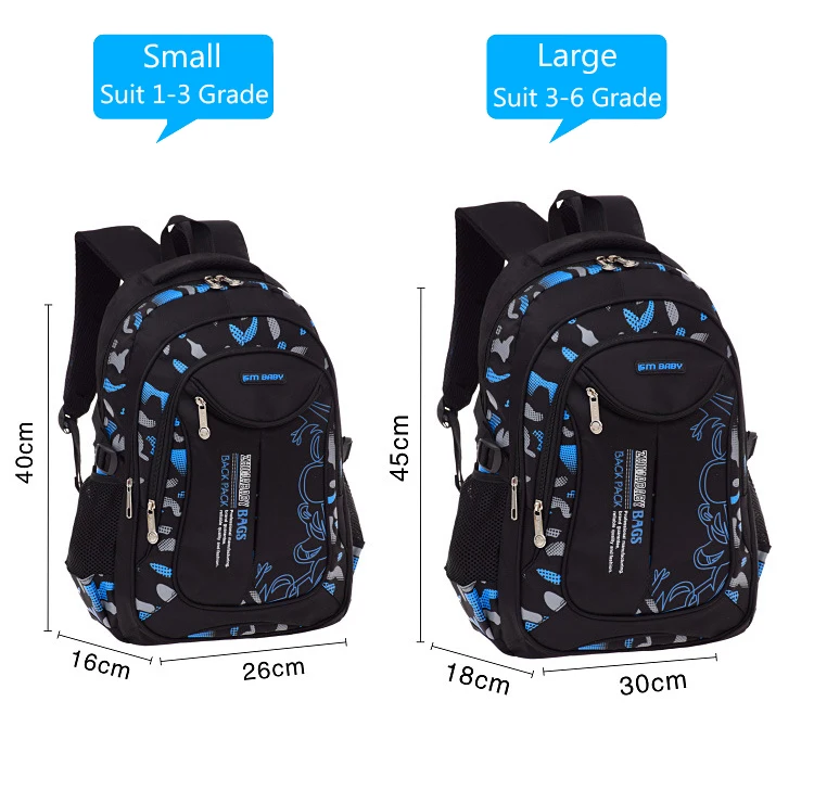 Название: рюкзакРазмер: L: 45 см * 30 см * 18 см (подходит для детей 3-6 классов)S: 40 см * 26 см * 16 см (подходит для детей 1-3 классов)Пол: девочки. МальчикЦвет: 4 цвета на выбор (стиль и цвет рюкзака зависят от изображения).Внутренний: можно хранить книги, канцелярские принадлежности и т. Д.Структура: большая вместимость основной мешок, внутренний межслойный, вспомогательный мешок, передний мешок, передний мешочек, боковой сетчатый мешок * 2Назначение: студенческий рюкзак,Количество 1 сумкаПримечания: "1. Измерения выполнены вручную, допускается погрешность в 1-3 см, единица измерения-см.2. Эффект фотоаппарата светильник может быть s светильник ly цветные"
