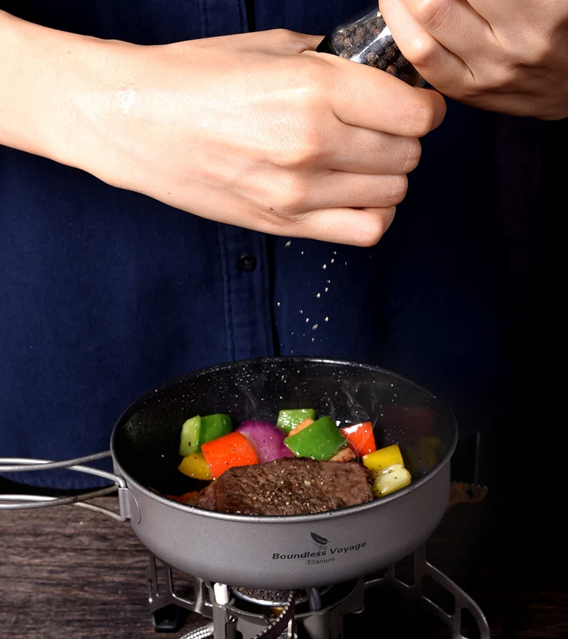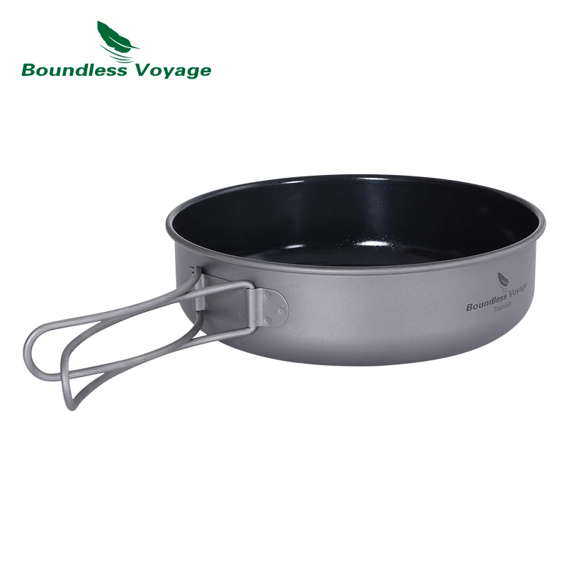 Антипригарная титановая сковорода для кемпинга, складная ручка, сковорода для пикника, посуда Ti15169B