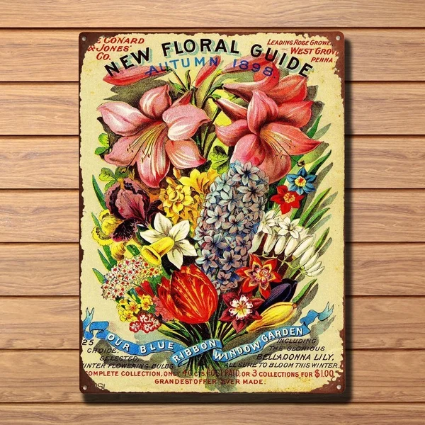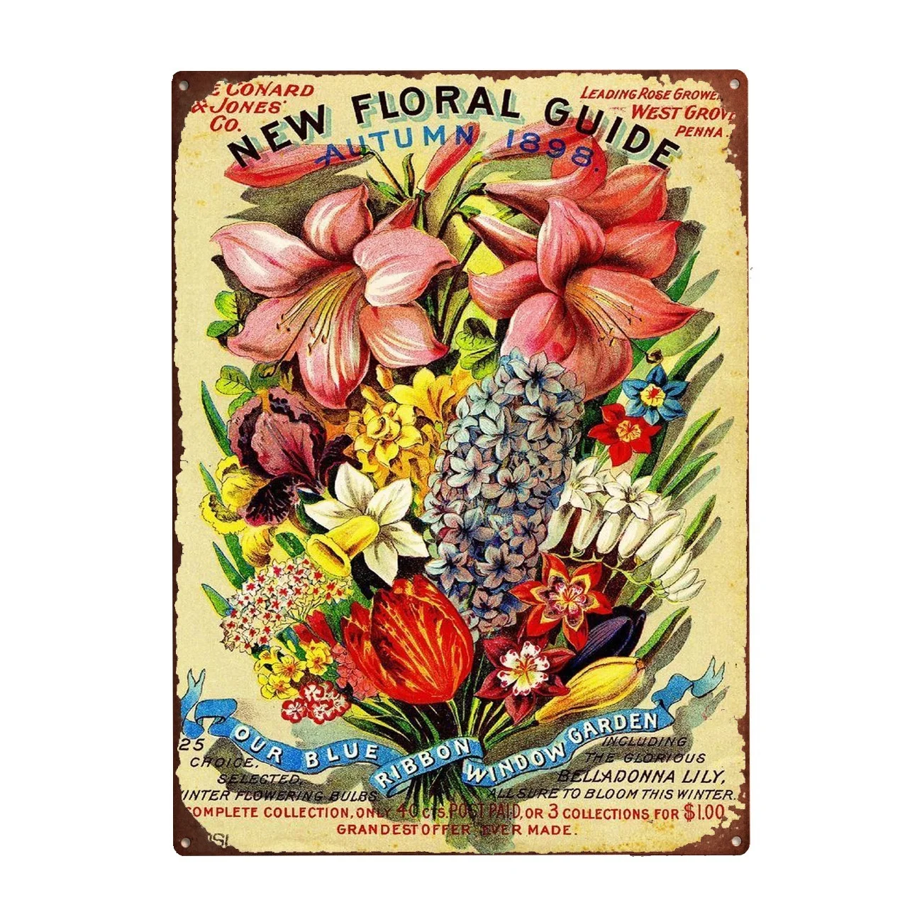 1898 цветочный гид, винтажные цветы пакетик семян, винтажный металлический жестяной знак, ретро жестяная пластина, знак, Настенный декор