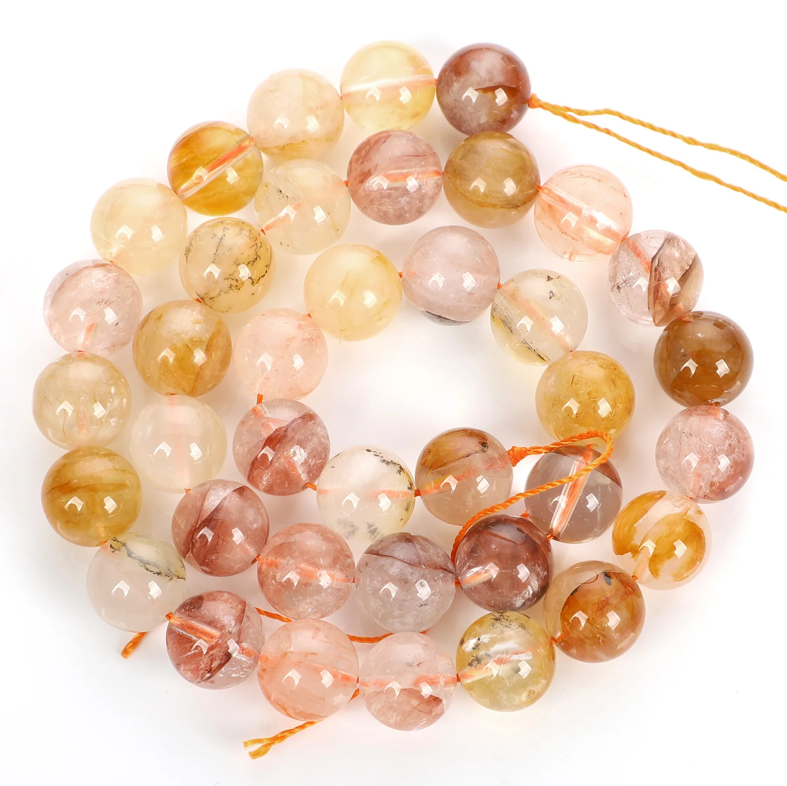 Натуральный камень желтый волос Кристалл кварц Шарм круглые свободн...
