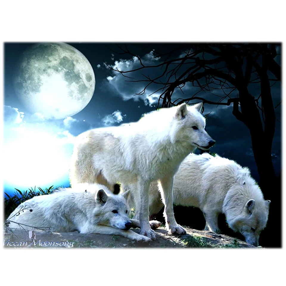Большая алмазная живопись, Белый Волк 5 d, алмазная вышивка, полнос...