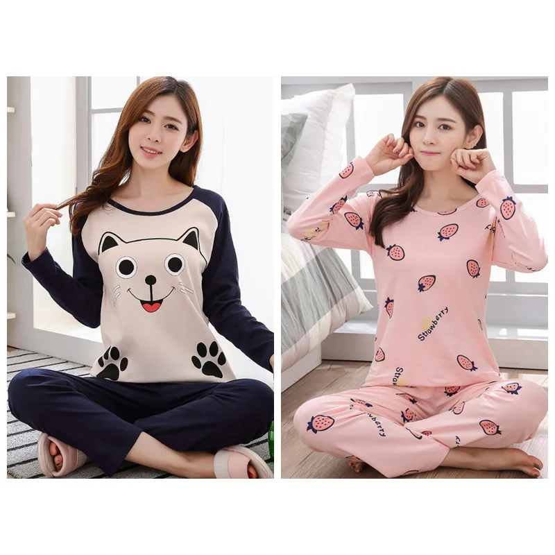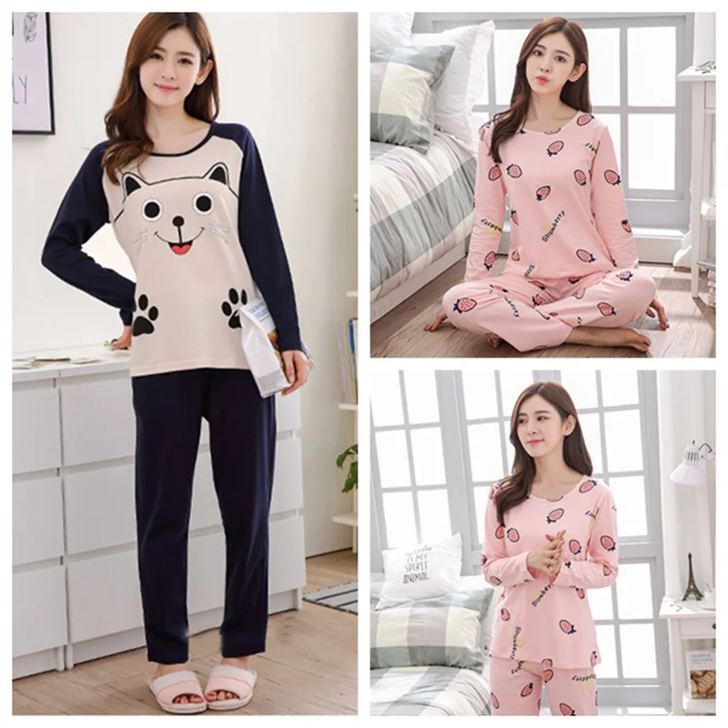 Комплект пижамный Женский, мягкий, без косточек, с мультяшным принтом, с длинным рукавом и брюками