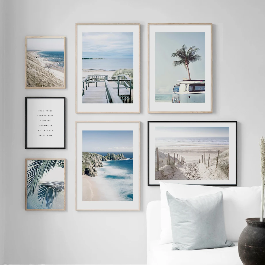 Настенная живопись на холсте голубой тропический пляж ананас Ван кокосовое дерево скандинавские плакаты и принты настенные картины для гостиной