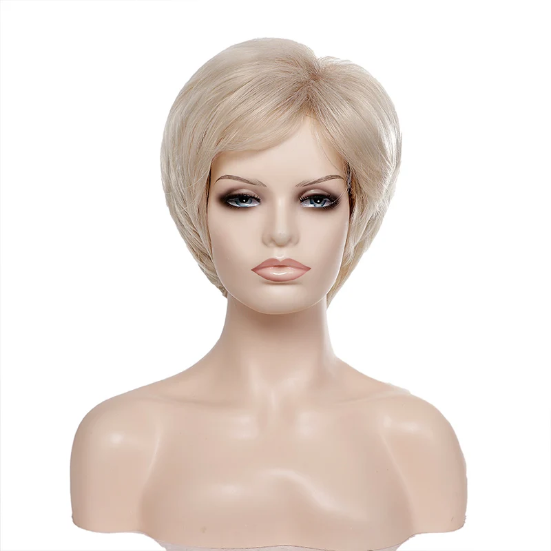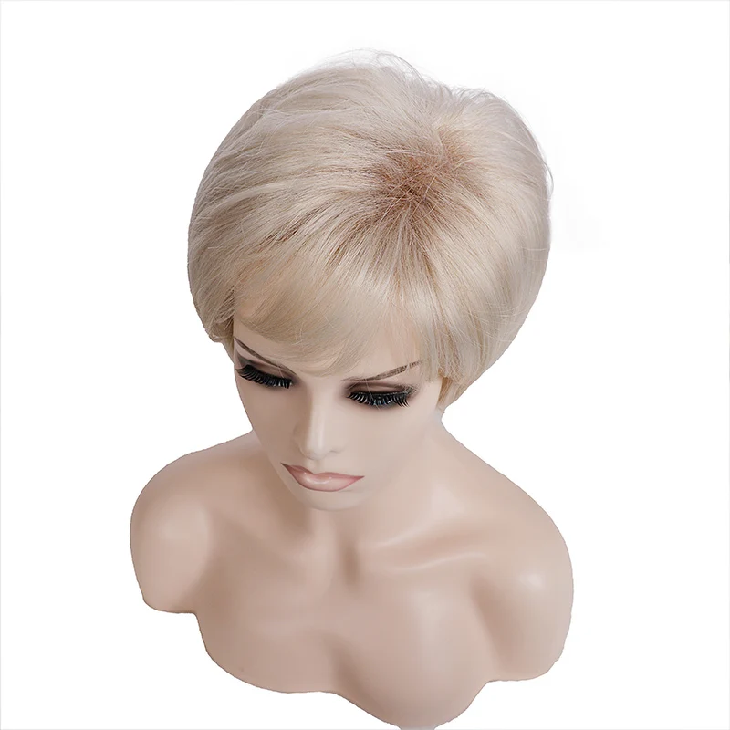 Короткие прямые синтетические волосы парик блонд парики с челкой дл...