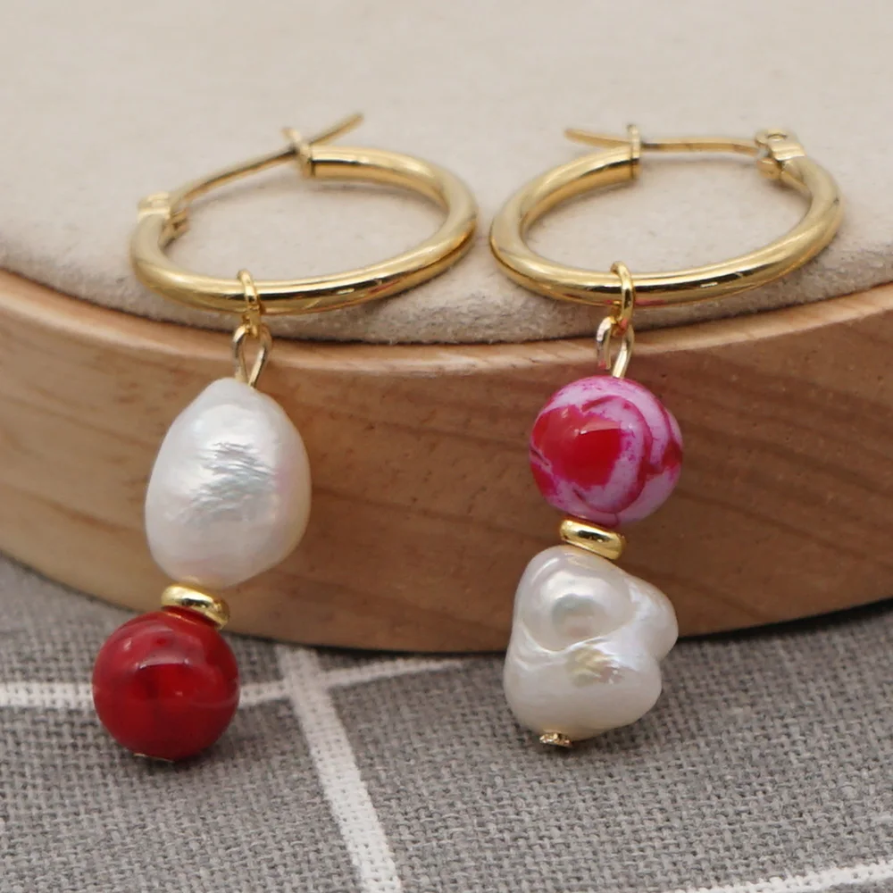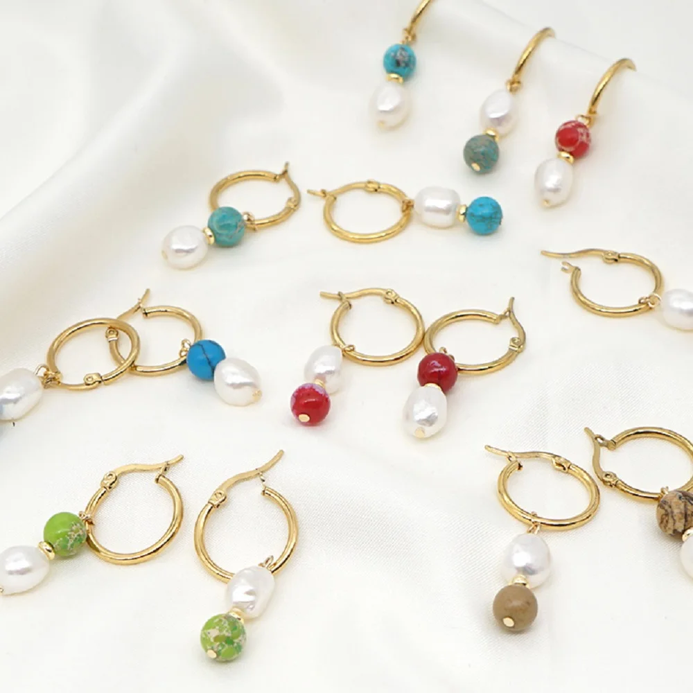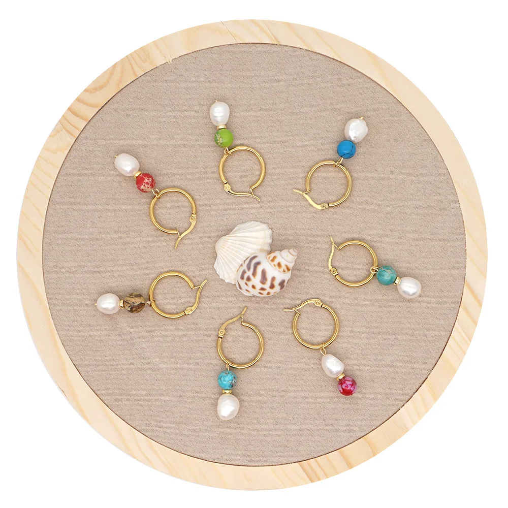 Серьги-кольца женские из нержавеющей стали, с натуральным камнем
