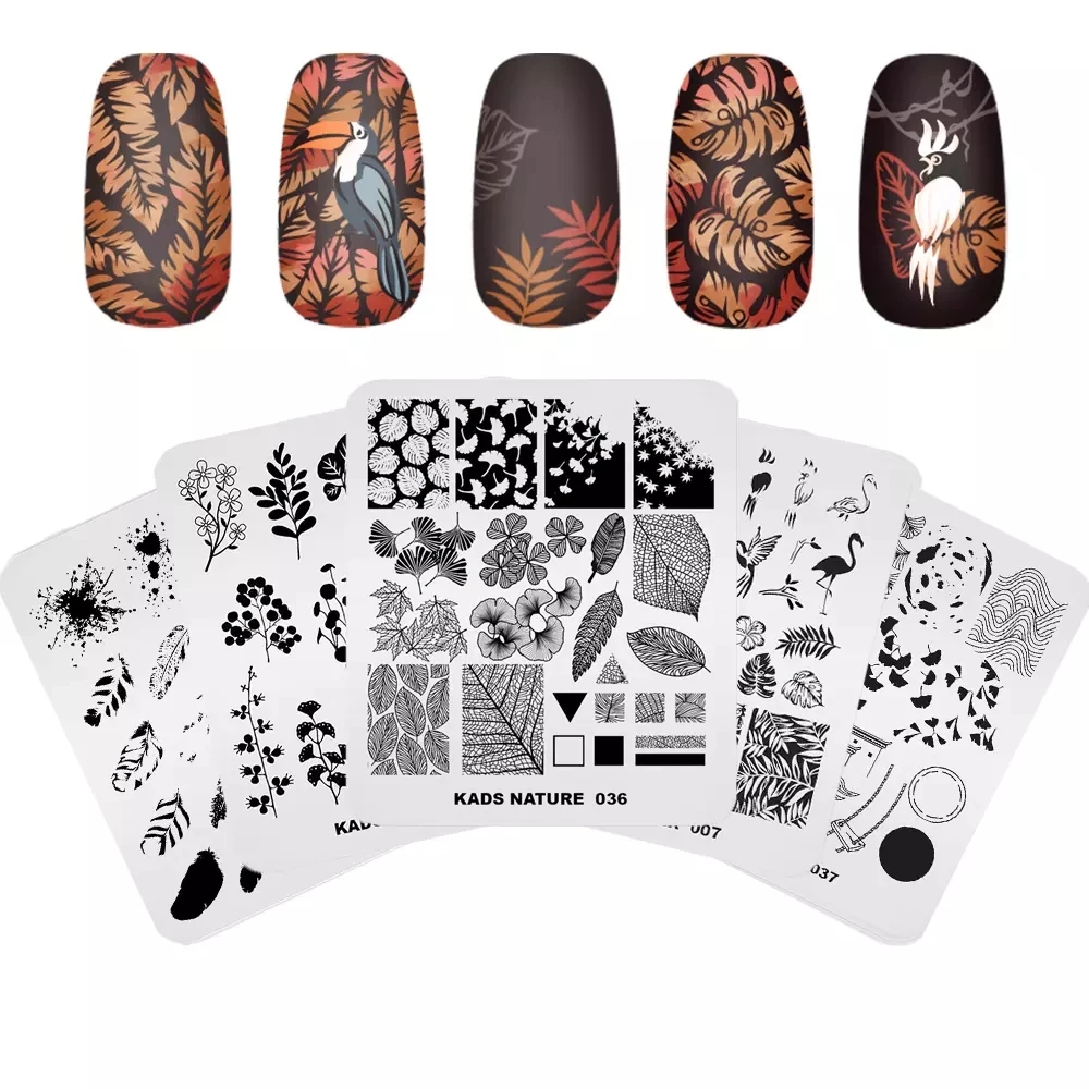 Пластина для штампа для ногтей, шаблон для создания изображения перьев, натуральные листья, для нейл-арта, пластины сделай сам для маникюра, инструменты для рисования