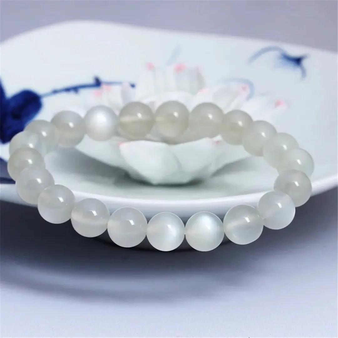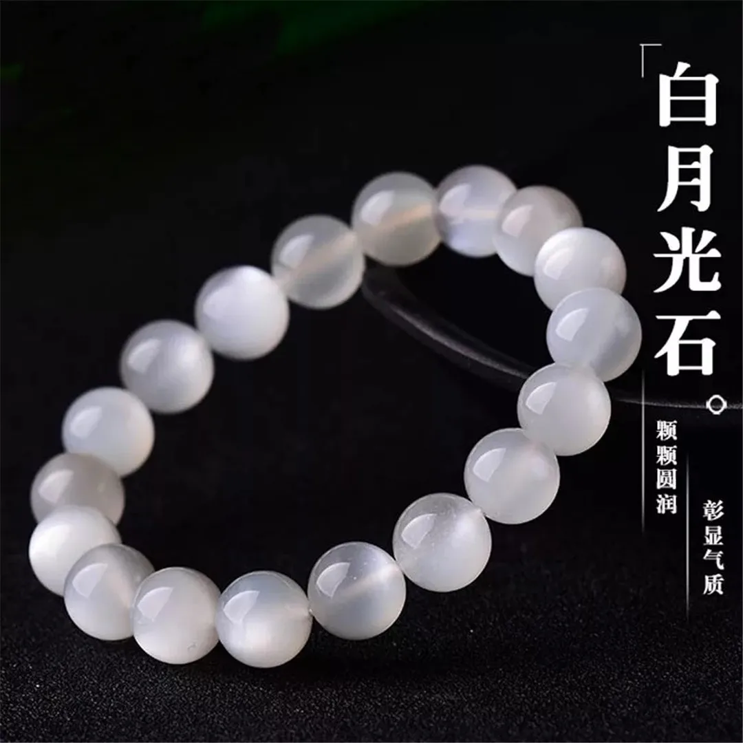 Браслет из натурального лунного камня для женщин и мужчин, подарок на удачу, бусины с белсветильник ллом, Драгоценный Камень Стрейч-бижутерия, 7 мм, 8 мм, 9 мм, 10 мм, 12 мм, Прямая поставка