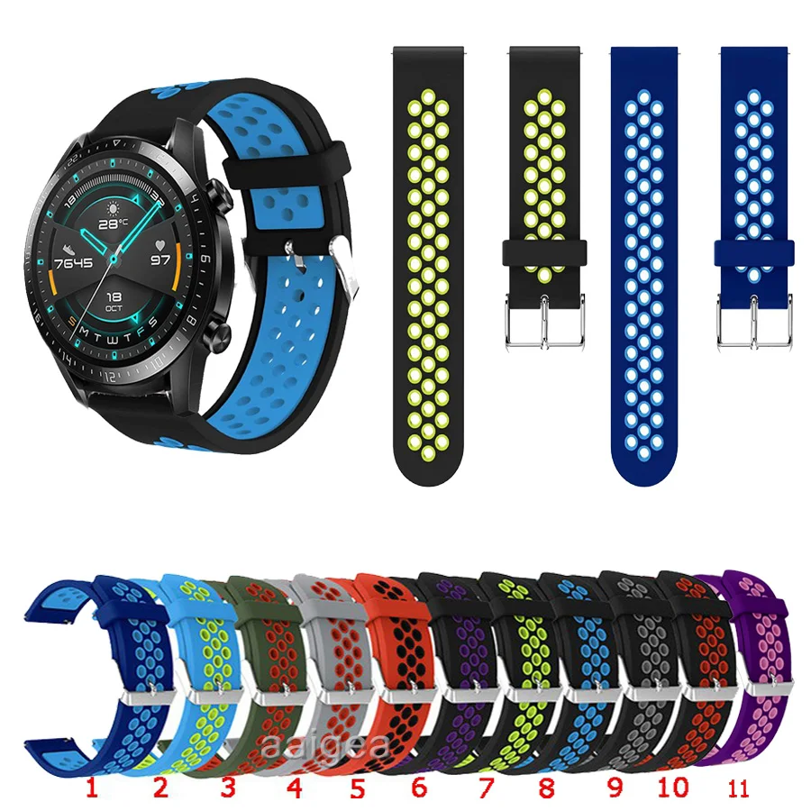Ремешок сменный силиконовый для Huawei Watch GT3 42 мм 46 мм 2e GT2 Pro Honor MagicWatch, мягкий спортивный браслет, 20 мм 22 мм