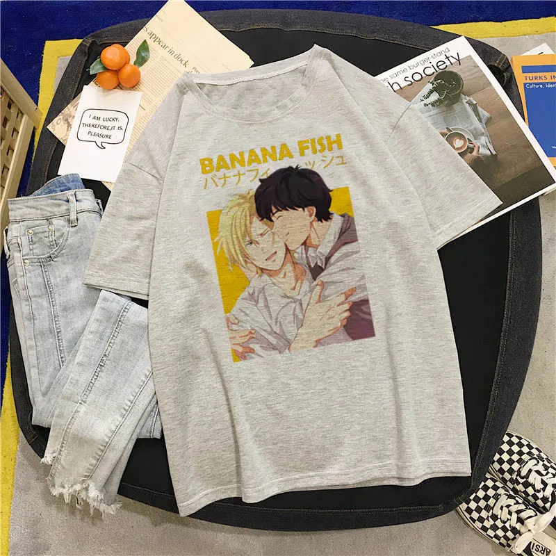 Летняя Повседневная Свободная футболка с аниме бананами и рыбками, ...