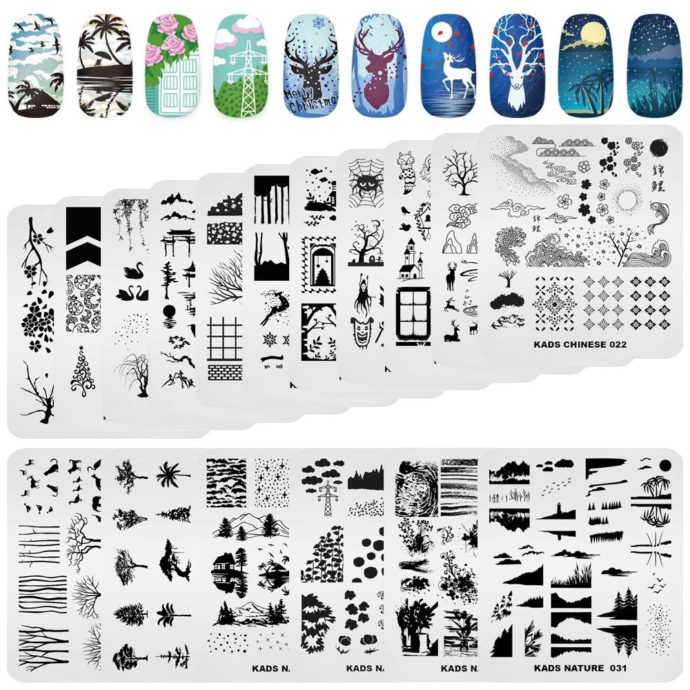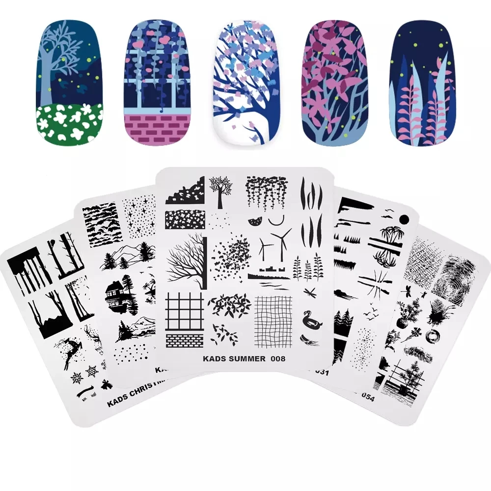 Пластина для стемпинга ногтей растения дерево геометрический узор шаблон штамп пластина для ногтей трафарет DIY печать инструменты из нержавеющей стали