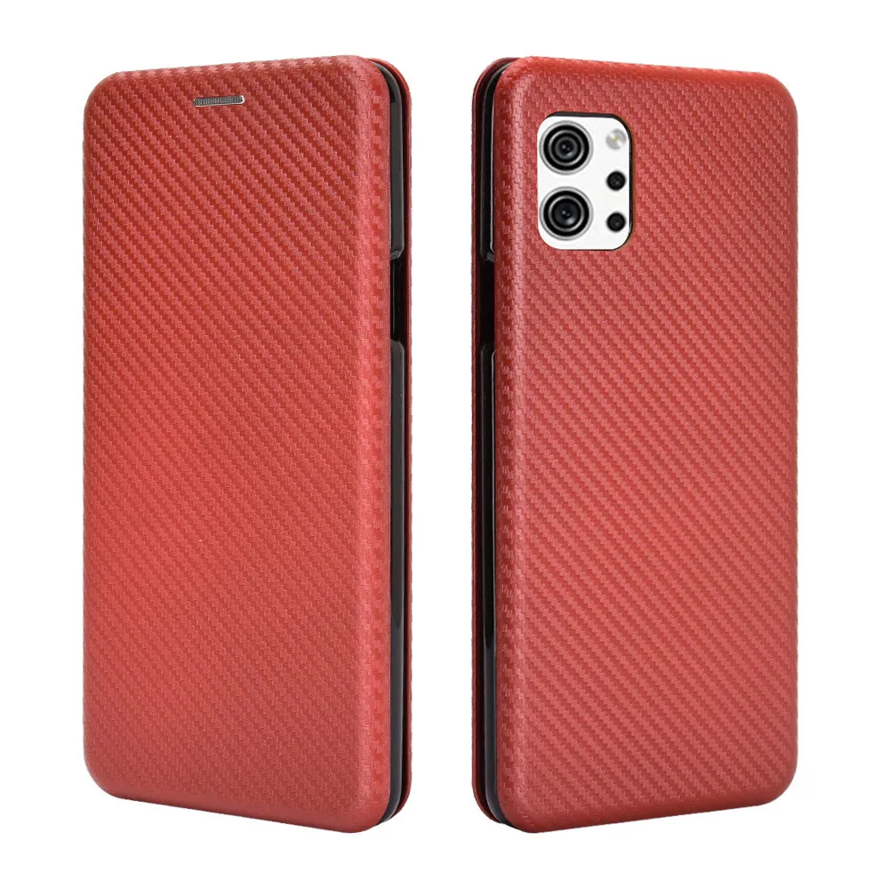 Кожаный чехол из углеродного волокна для Moto G60, магнитный чехол-...