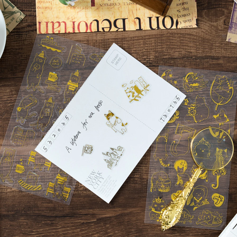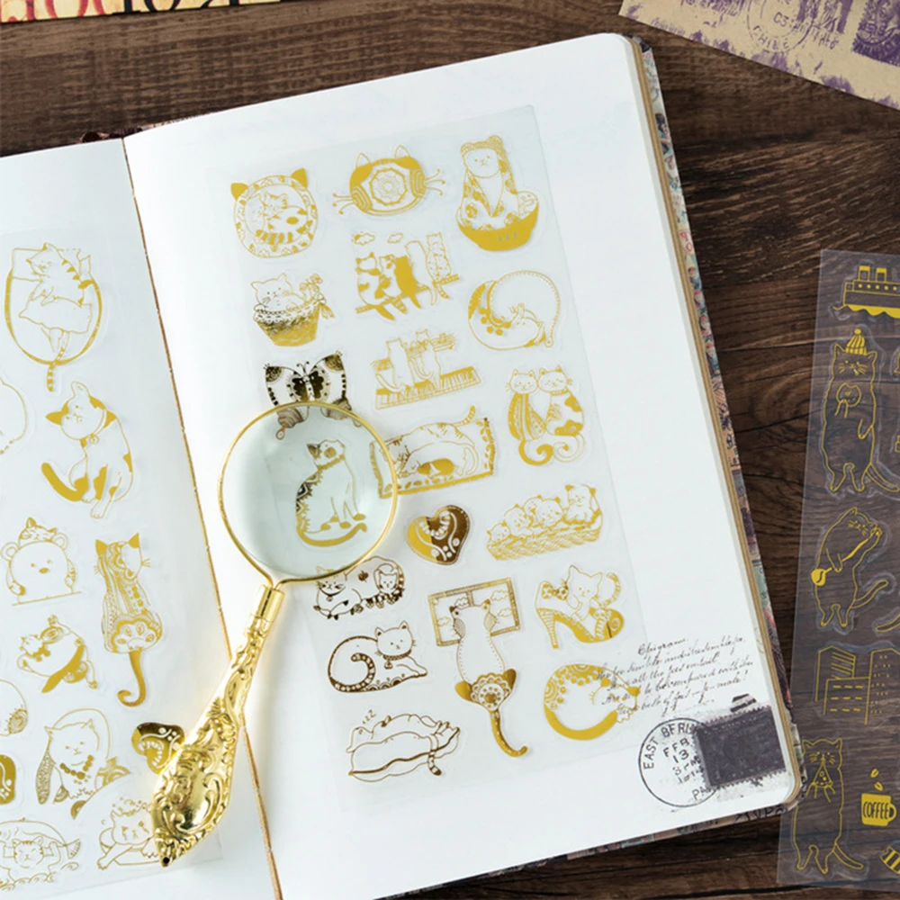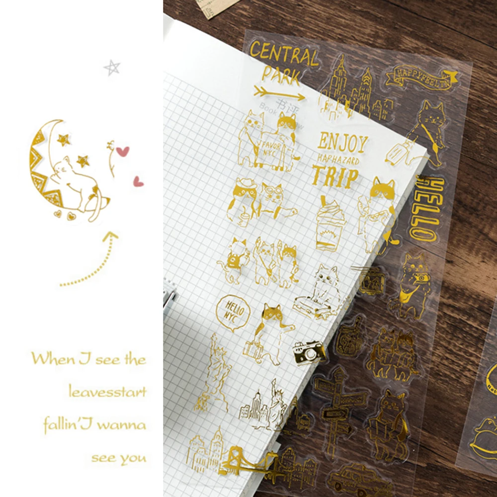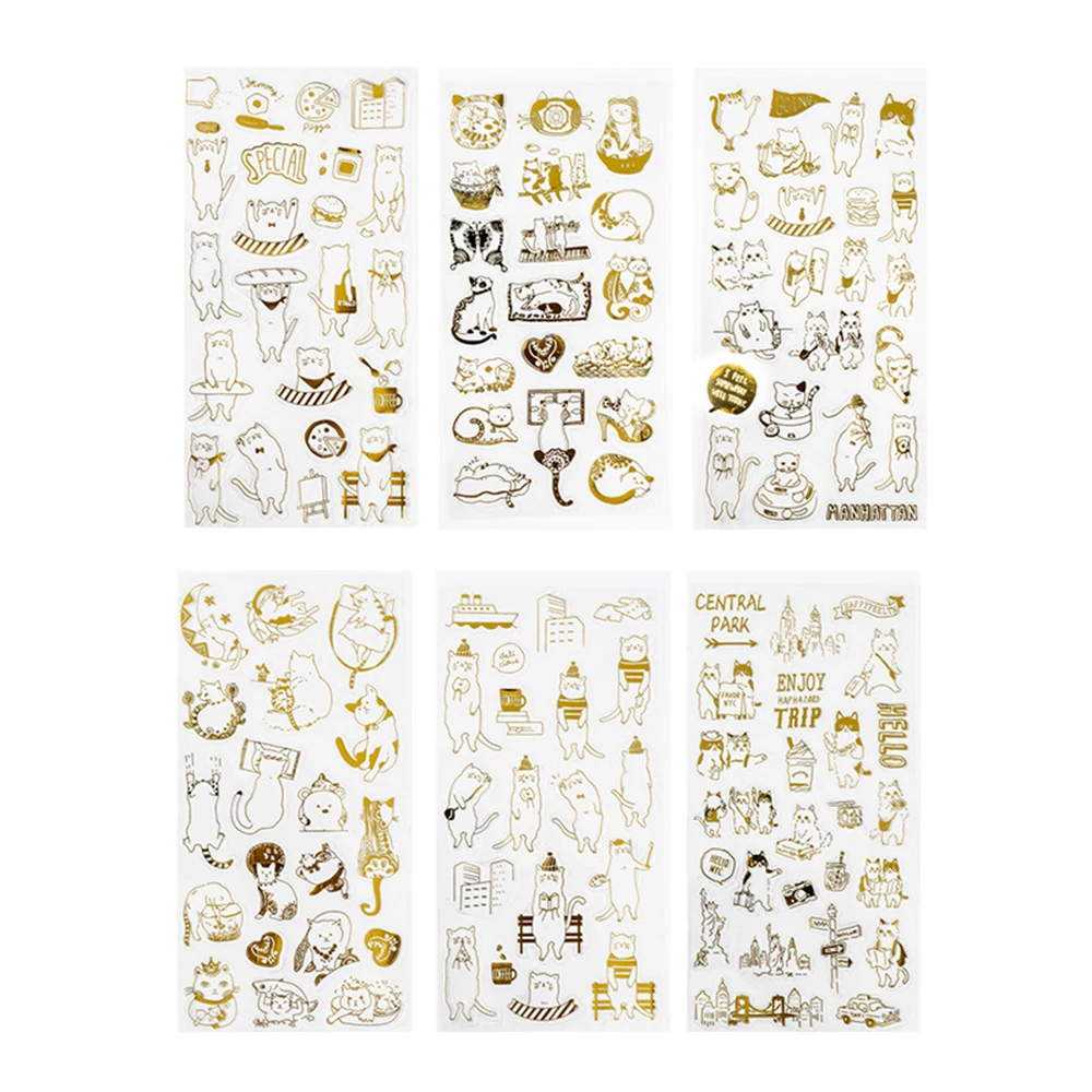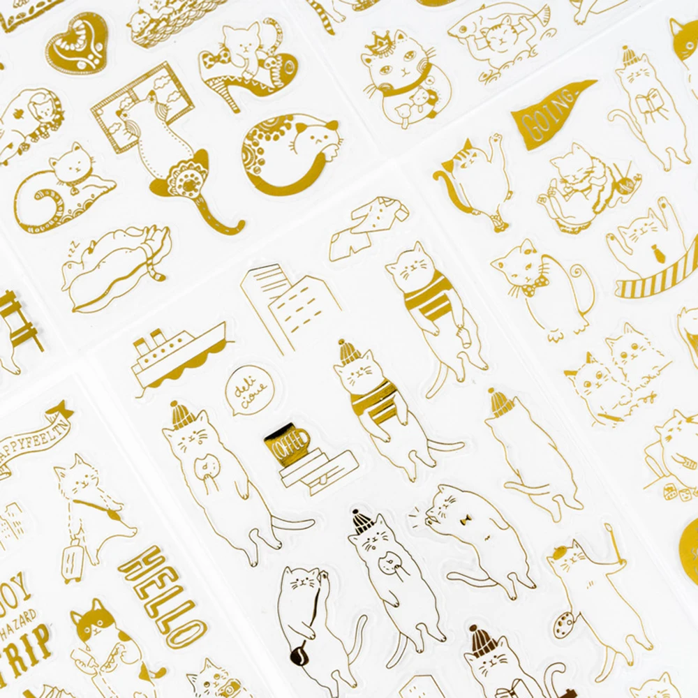6 листов милые кошки золотистые наклейки DIY дневник в стиле Скрапбукинг Декоративные наклейки Kawaii