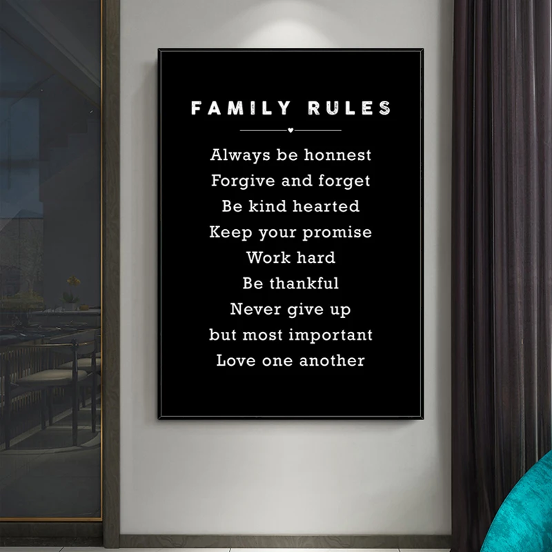 Мотивационное искусство, холст, живопись, правила семьи, вдохновляющий постер, печать, настенное искусство, картина для гостиной, Куадрос, домашний декор