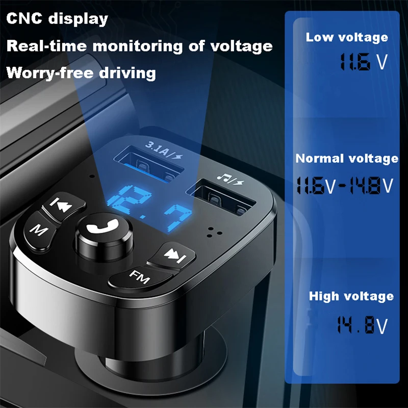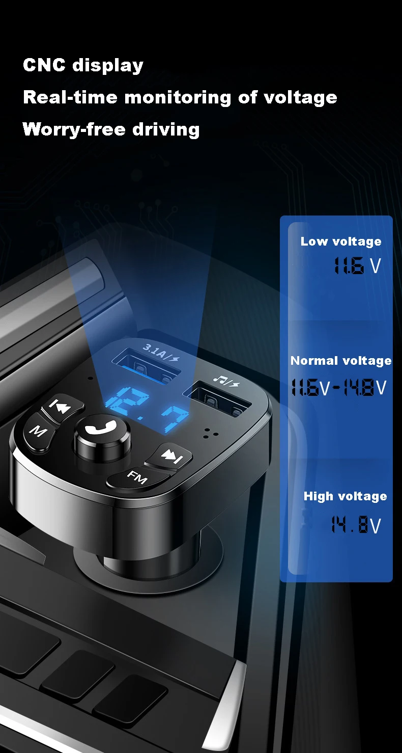 Дисплей напряжения: функция отображения напряжения может обеспечить четкое напоминание о безопасности. Hands-free вызов: технология Bluetooth 5,0 может обеспечить стабильное соединение, и функция подавления эха может уменьшить фоновый шум. 3 музыкальный плеер: поддержка Bluetooth музыки/USB диска/tf-карты/MP3 плеера. Безопасность: обеспечивает безопасное вождение без помех. Совместимость: подходит для большинства смартфонов, планшетов и других устройств с функцией Bluetooth, таких как iPhone, iPad, iPod, Tablet, Samsung и других смартфонов Android.