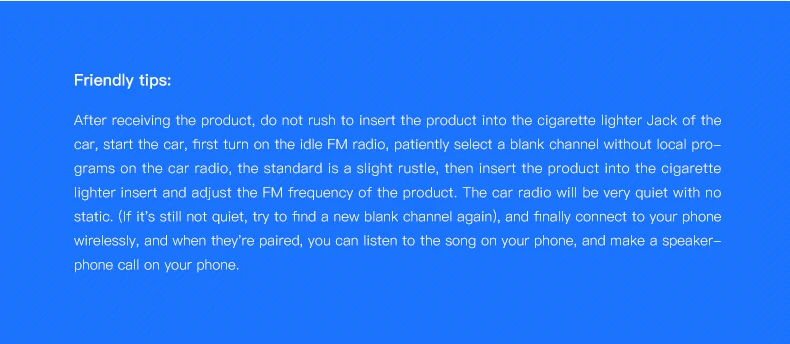 Материал ABS Выход 5V/3.1A Версия Bluetooth V5.0 Светодиодный экран с точечной матрицей Дальность передачи FM 5 метров Расстояние передачи Bluetooth 10 м FM частота 87,5-108 МГц Bluetooth Диапазон 2,4 ГГц-2,48 ГГц Входное напряжение 12-24 В Посылка включает в себя: 1xCar Bluetooth fm-передатчик