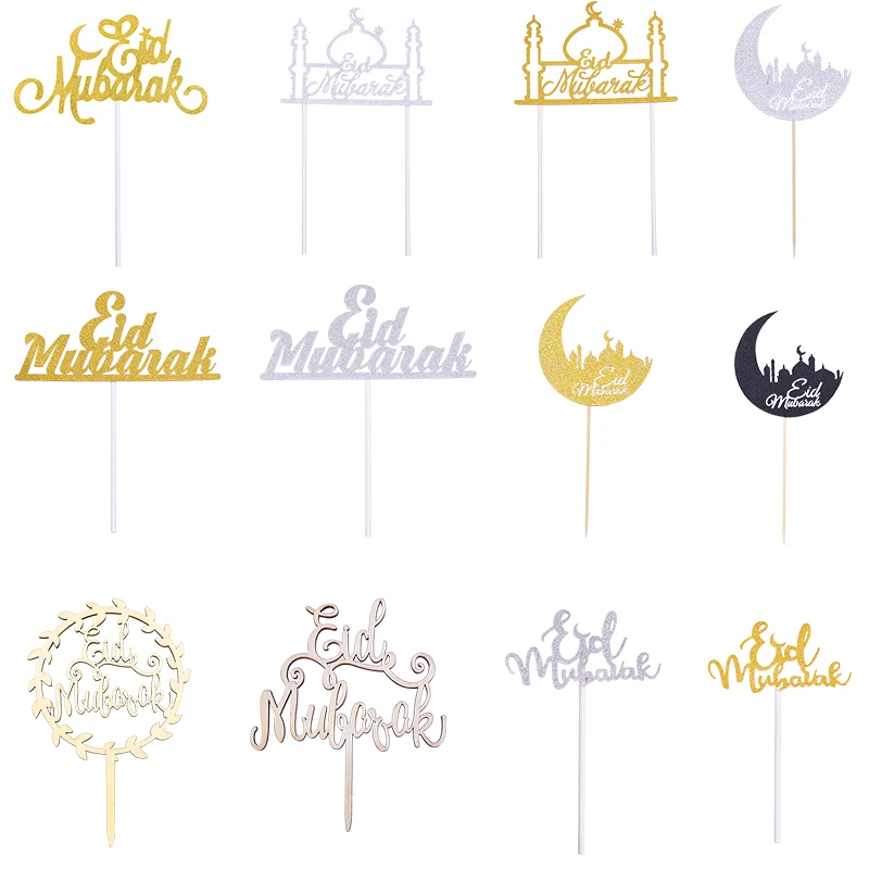ИД украшение Мубарак игрушечный деревянный пирог фигурки жениха и невесты; Бумага Топпинг для кексов для Рамадан фестиваль вечерние десерт материалы для украшения тортов